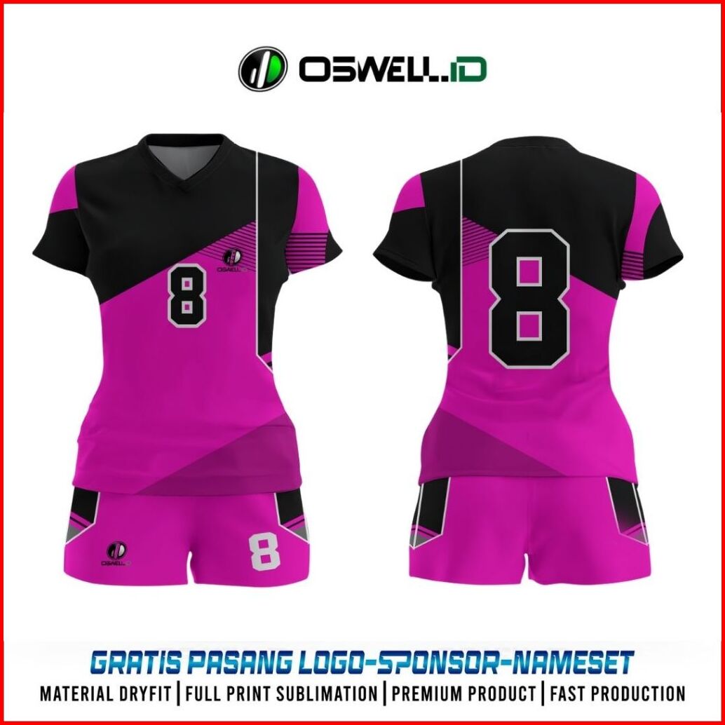 Baju Jersey Voly Wanita Warna Black Pink Printing Premium Free Custom Oswell - Vo Os12