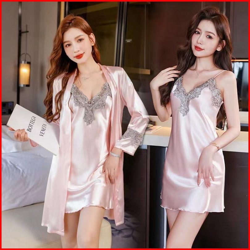 Fanmu Baju Tidur Kimono Kimono Baju Tidur Satin Baju Tidur Wanita