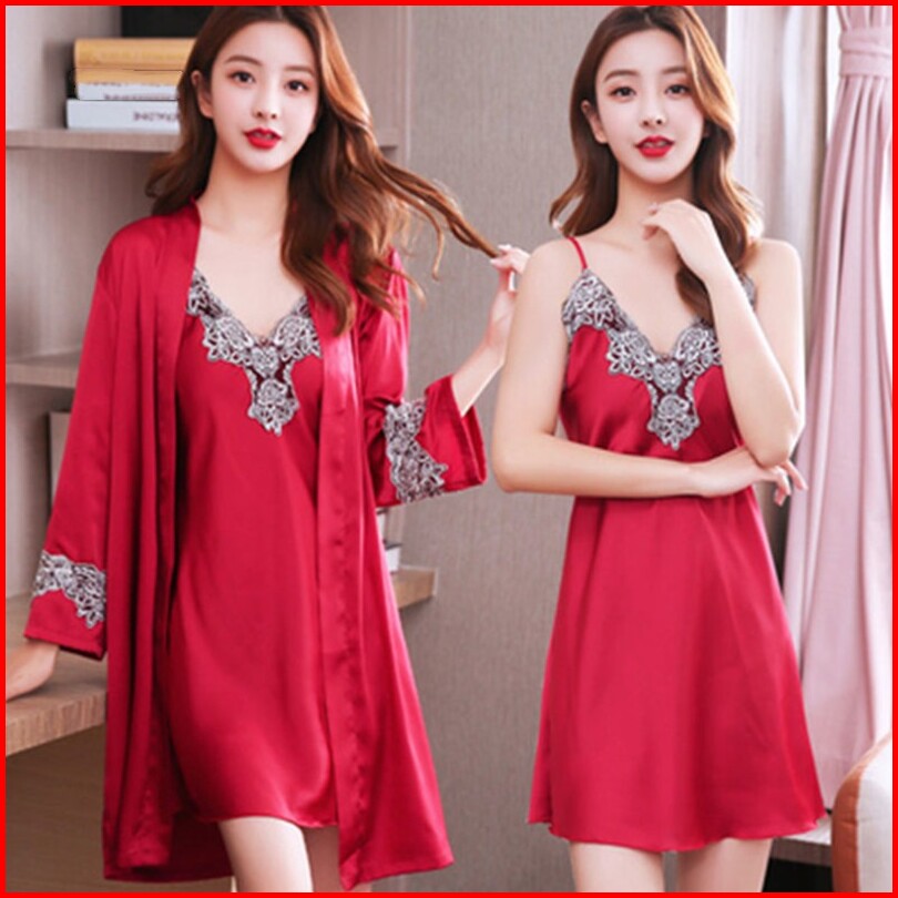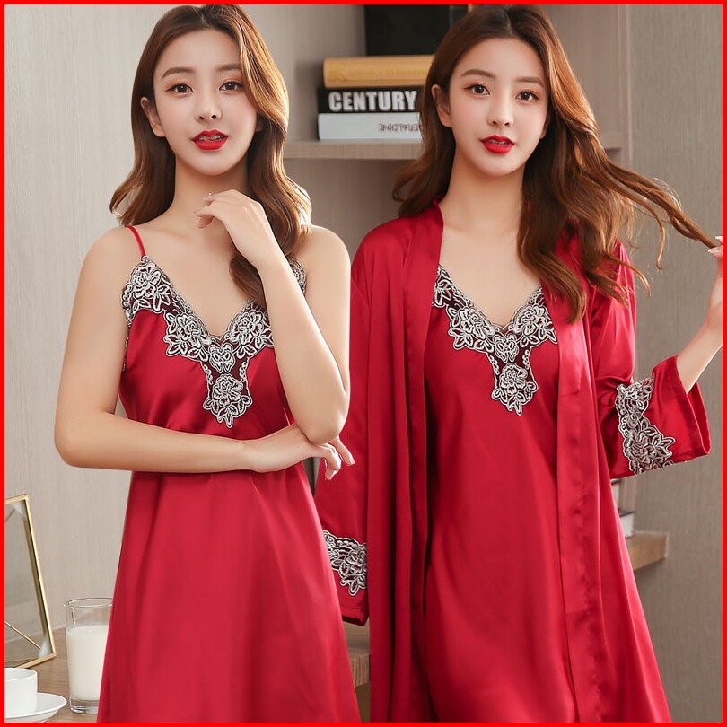 Musim Semi Dan Musim Gugur Piyama Wanita Es Sutra Seksi Lengan Panjang Suspender Baju Tidur Korea Su