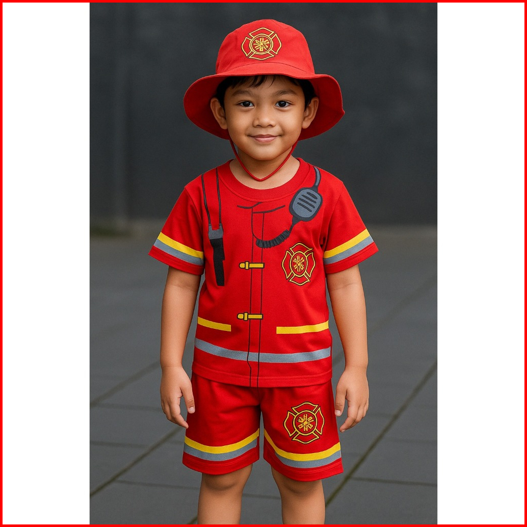Setelan Kostum Baju Anak Damkar Pemadam Kebakaran Untuk Anak 2-10 Tahun