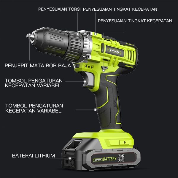 Mesin Bor Listrik Baterai Tangan Cordless Drill Battery Bor Tanpa Kabel Bor Lithium ZP011