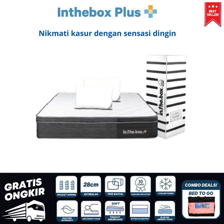 KASUR IN THE BOX 180 200 - 160 200 -120 200 - 200x180x30 - single 200 200 INTHEBOX PLUS (Plush Top) | GRATIS Kasur Bed