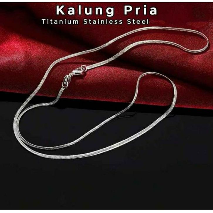 kalung titanium model gepeng silver anti karat dan tidak pudar