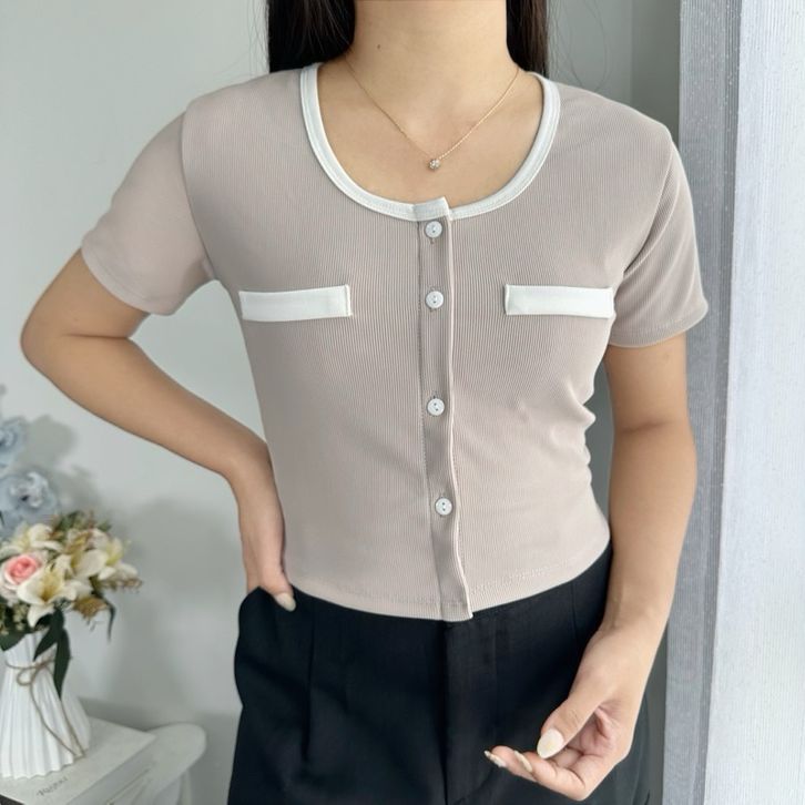 Atasan Blouse Wanita Crop Top Knit Baju Atasan Wanita Kasual Kekinian Korean Fashion Style Baju Crop Cewek