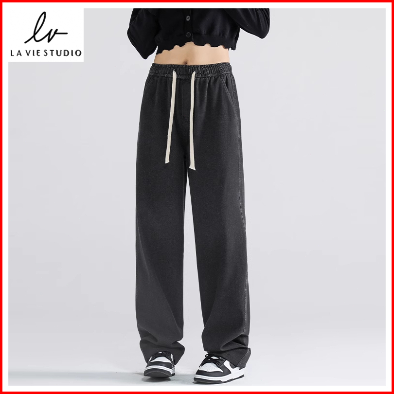 Celana Jeans Wanita Kulot Jeans Wanita Pinggang Karet Celana Wanita Kekinian Korean Style Casual Baggy Pants Washed Stra
