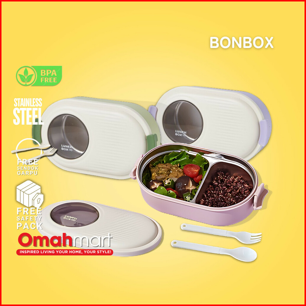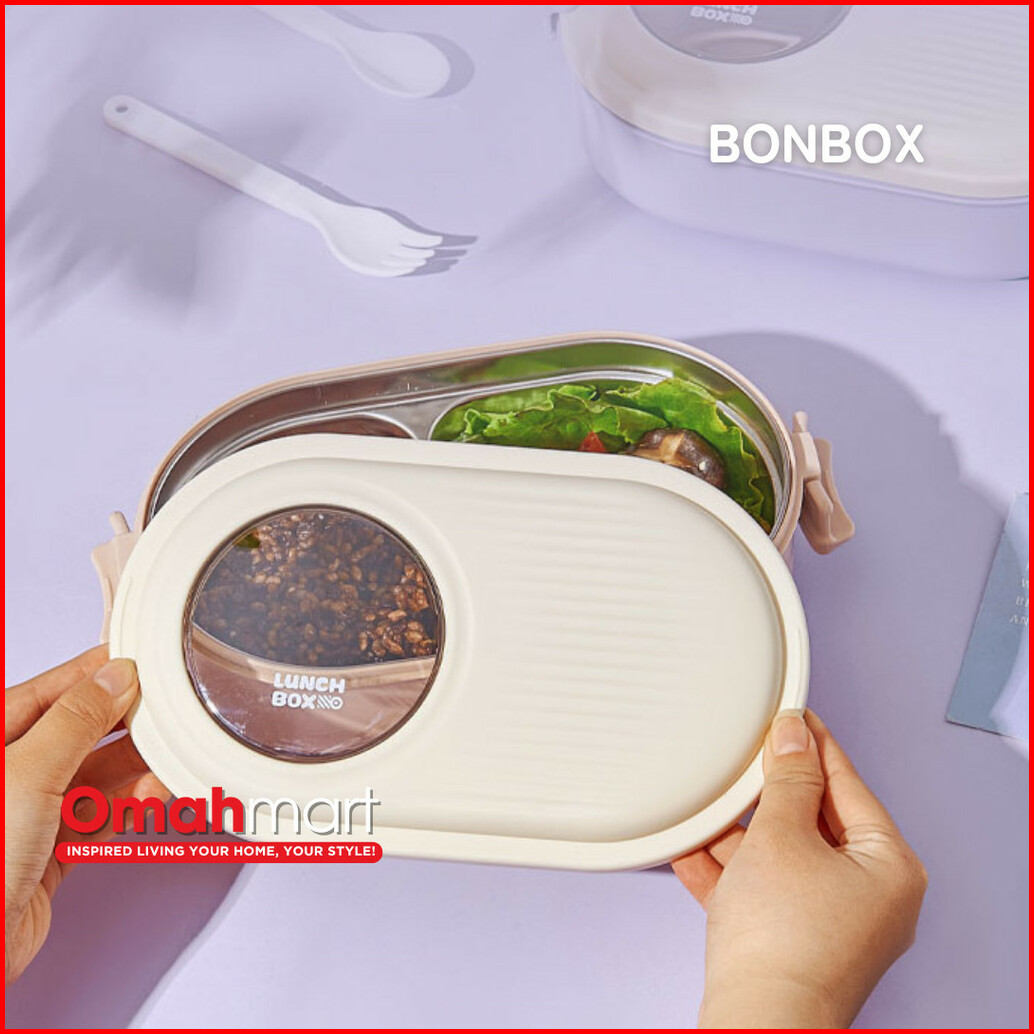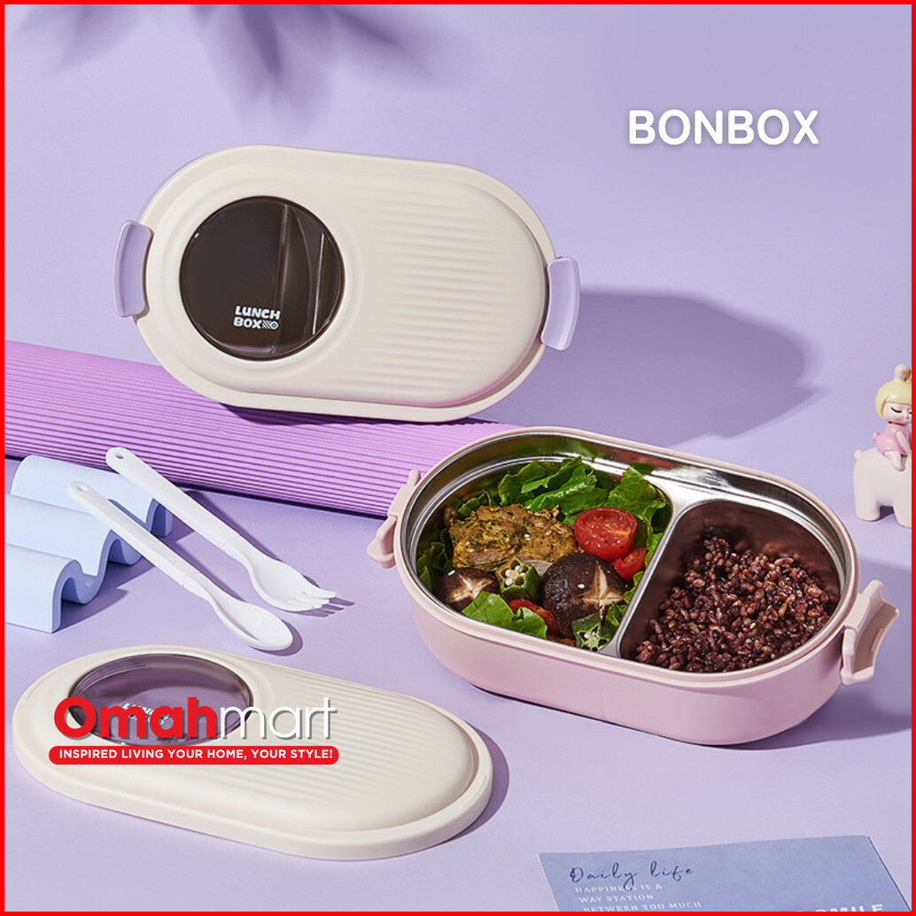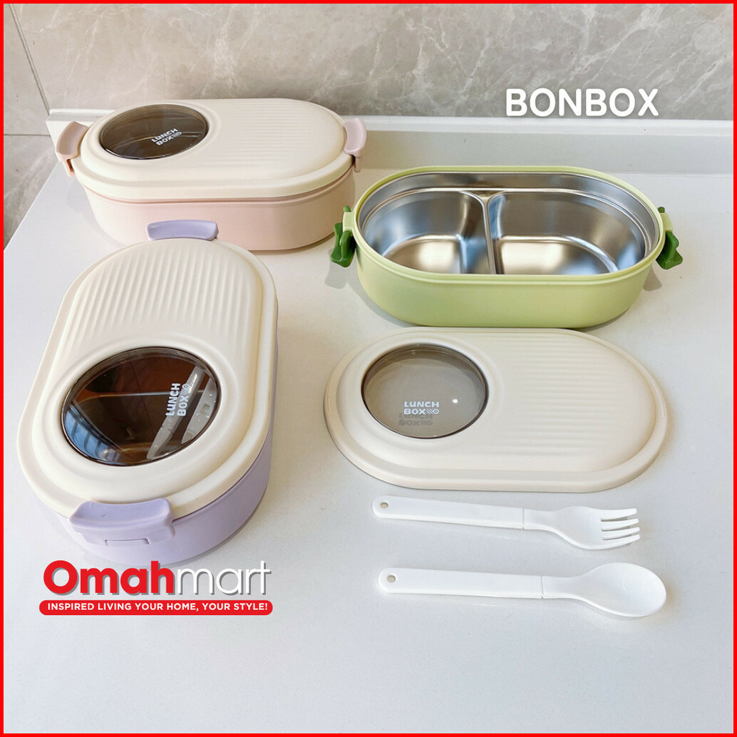 Bonbox Lunch Box Stainless Steel Kotak Bekal Makan Siang Anak Lucu 1000 Ml Microwaveable