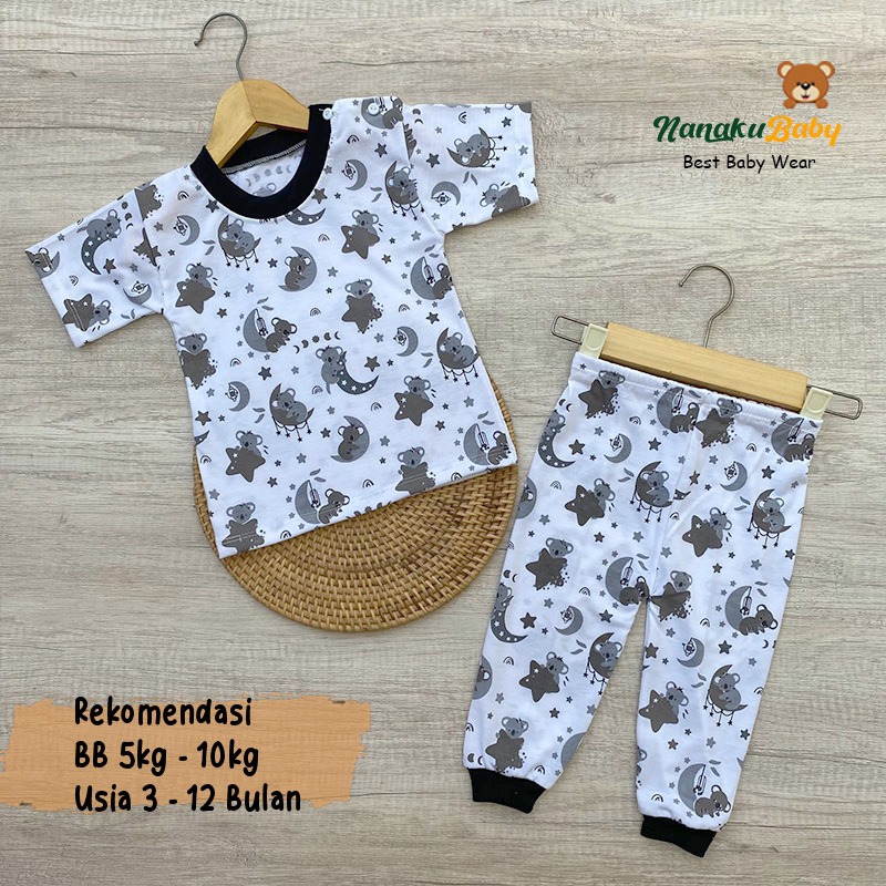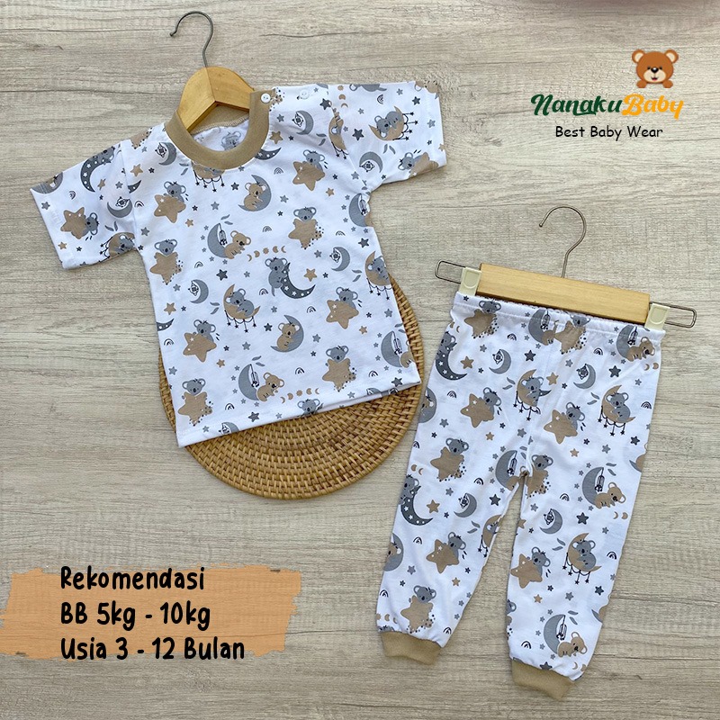 Nanaku Baby - Setelan Harian Anak / Setelan Bayi Model Lengan Pendek Celana Panjang Usia 3-12 Bulan Motif Koala & Star