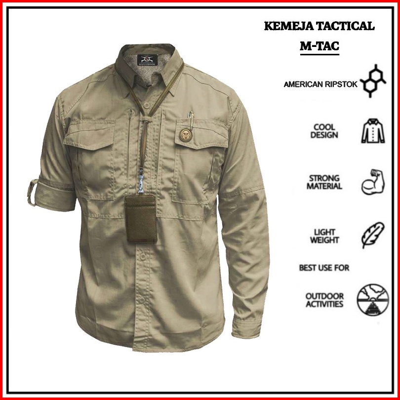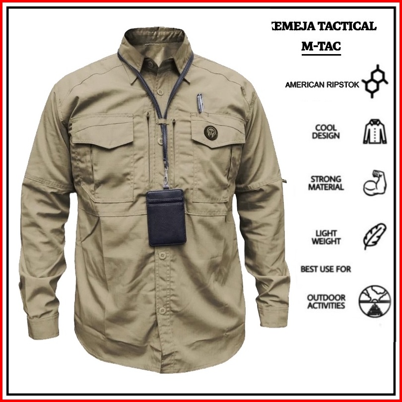 Kemeja Lapangan M-tac Lengan Panjang Original Premium High Quality Pria Wanita Outdoor Kantor Satpam