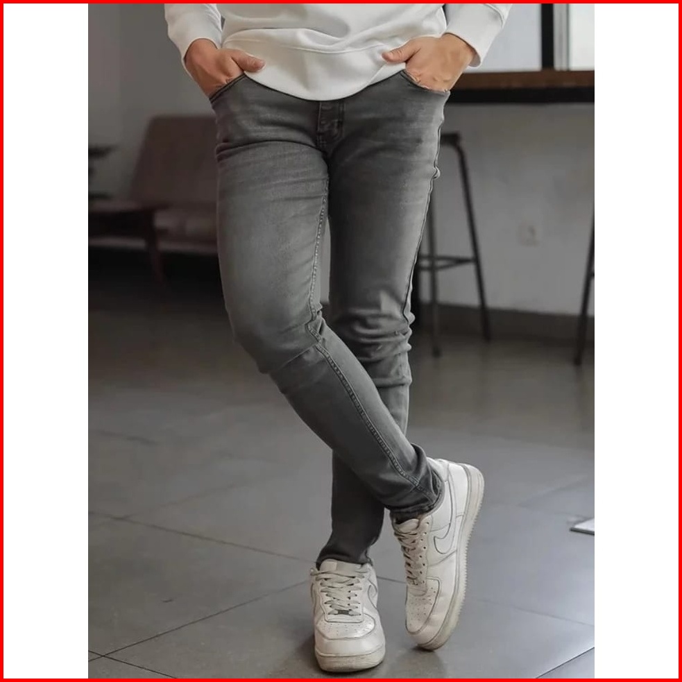 Celana Jeans Pria Skinny Snow Acid Grey Terbaru Celana Jeans Panjang Skinny Cowok