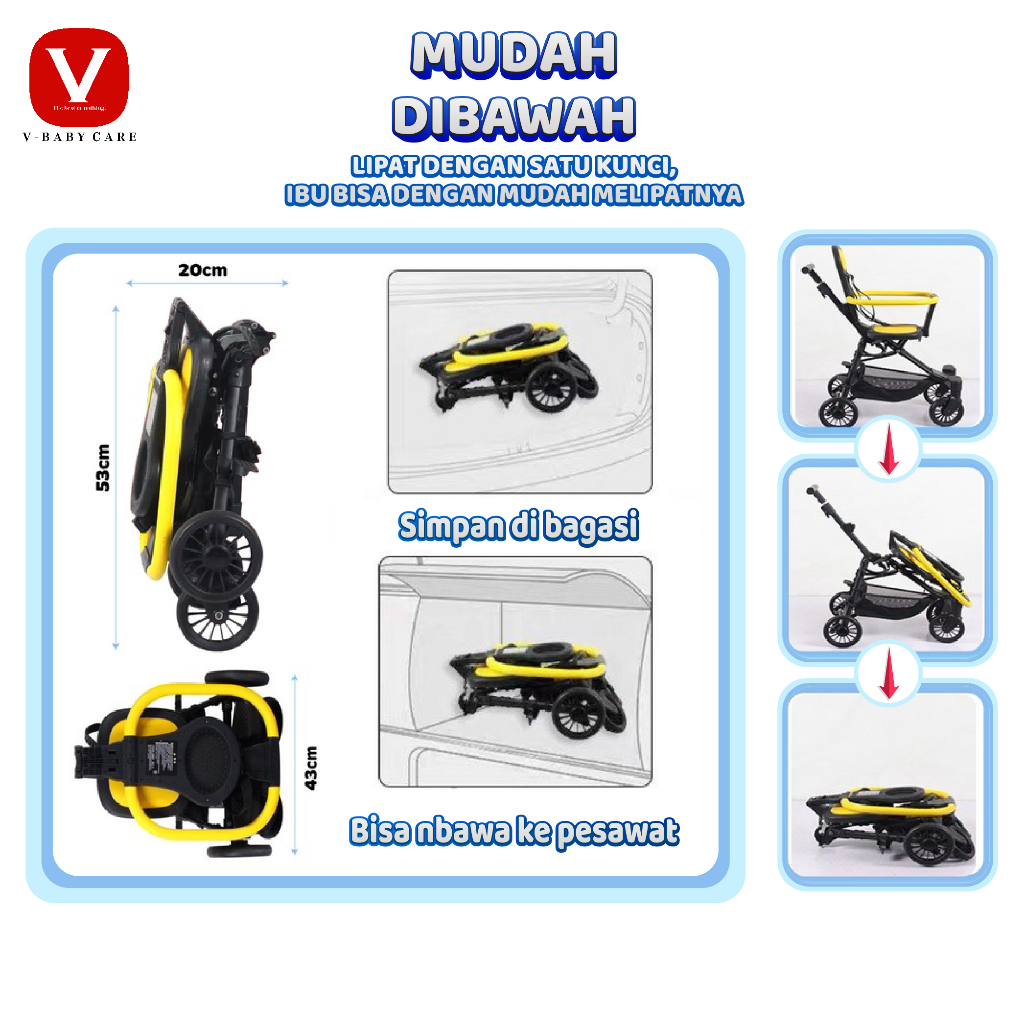 stoller sugar baby V BABYCARE Stroller Baby Kereta Dorong Balita Kereta Lipat Magic Stroller Baby 2 Way Travel