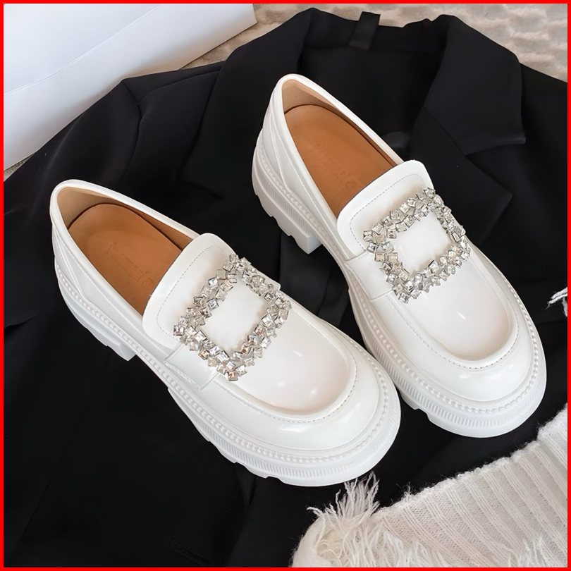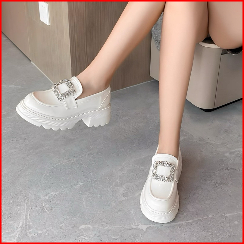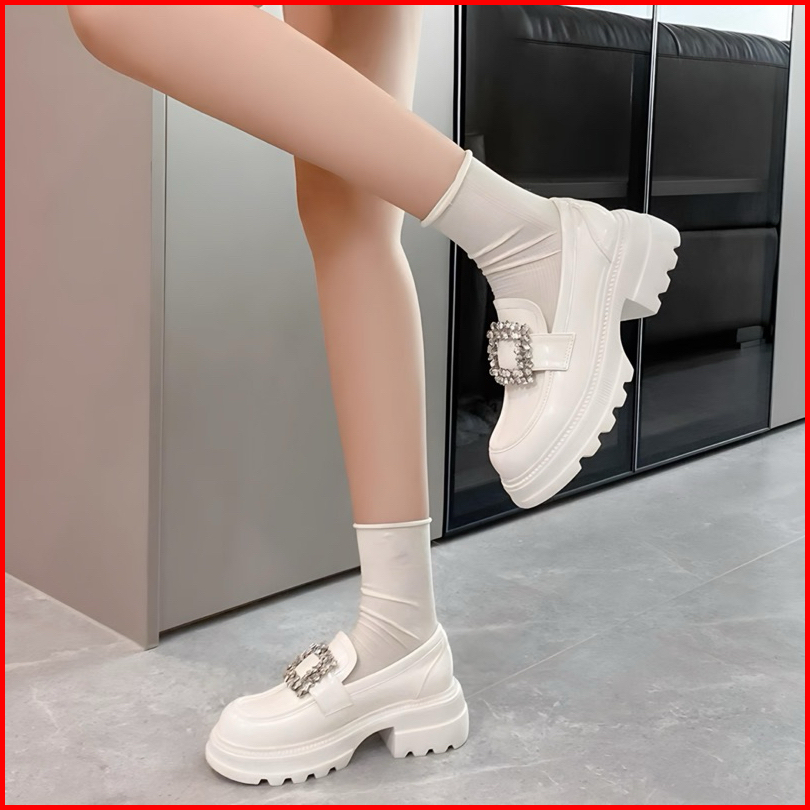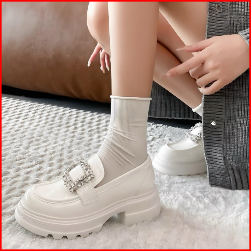 Sepatu Docmart Wanita Seoji Terbaru Putih Mutiara Flat Loafers Kasual Slip On Cewek Ootd Kekinian Premium Quality 1989