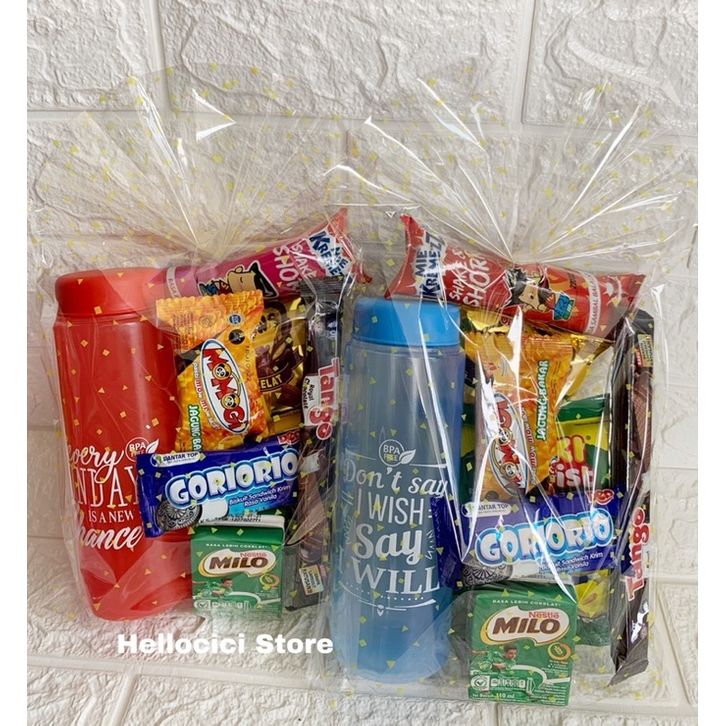 25 Paket Souvenir Ultah Anak Parcel Bingkisan Snack Kemasan Rapi Mu Bottle Ultah Hampers Ultah Anak Free Card Name