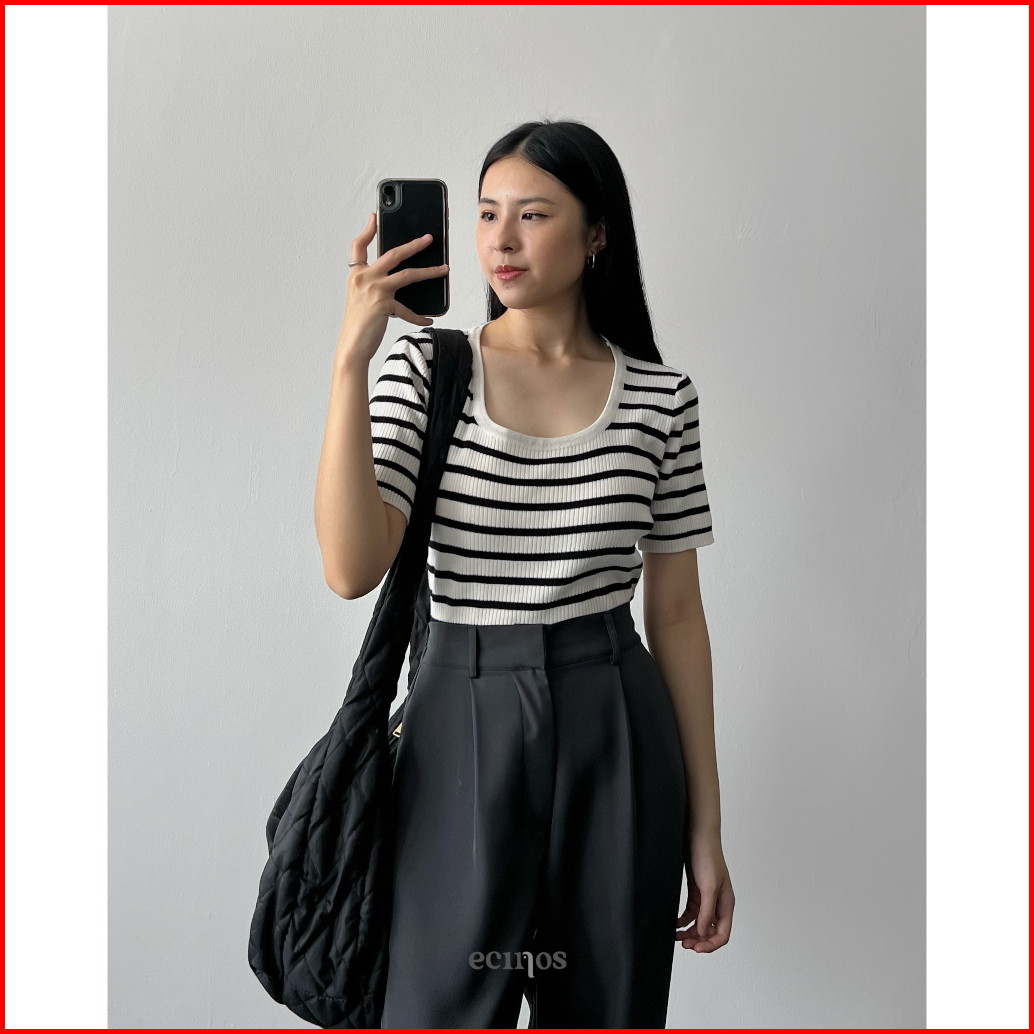Ecinos - Mentari Striped Knit Top Atasan Wanita Kaos Wanita