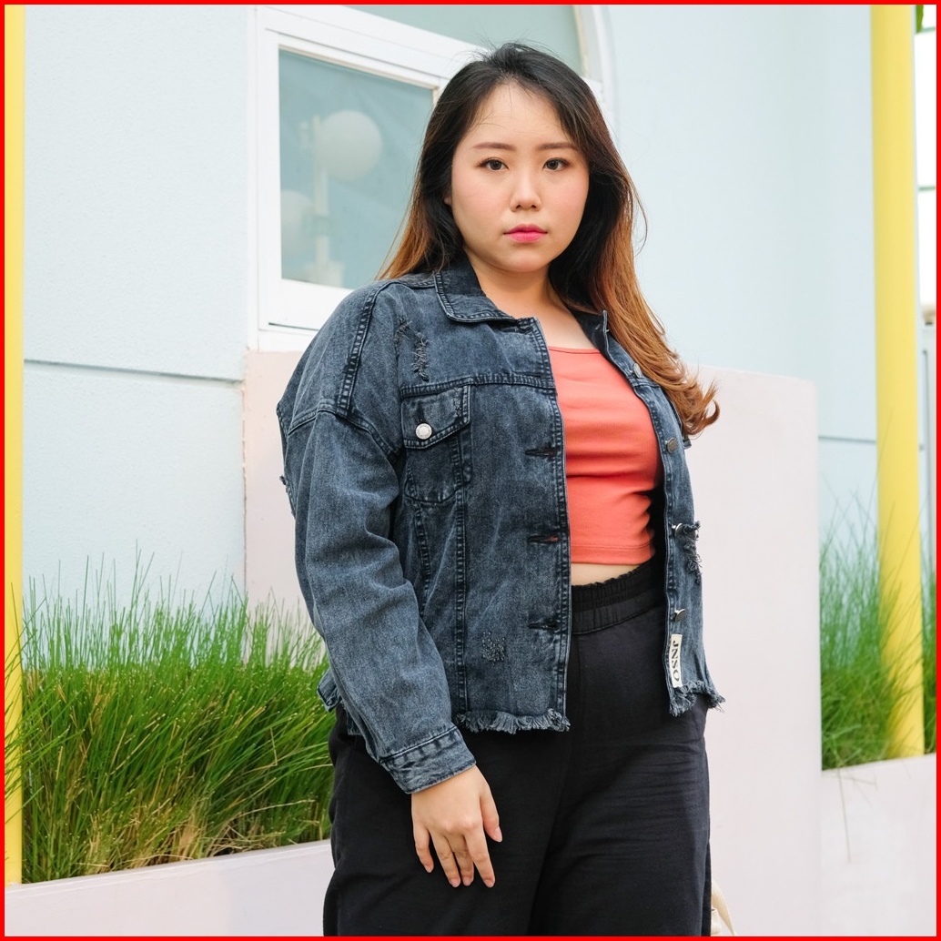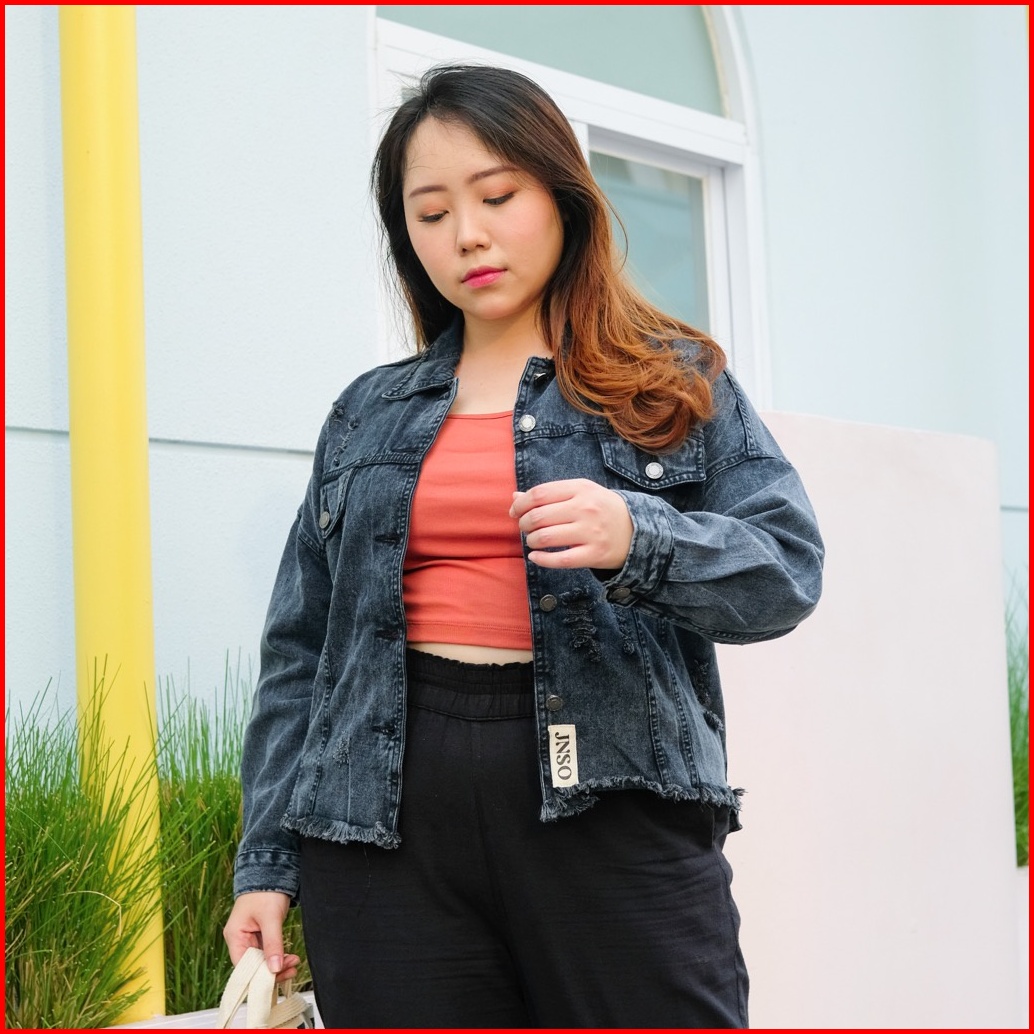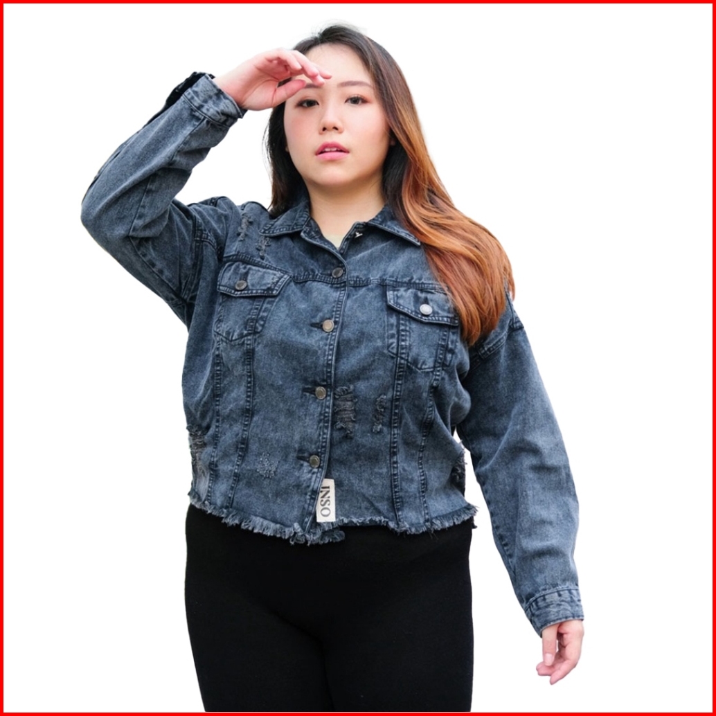Jiniso Big Size Ripped Jaket Jeans Oversize Vintage Black Acid