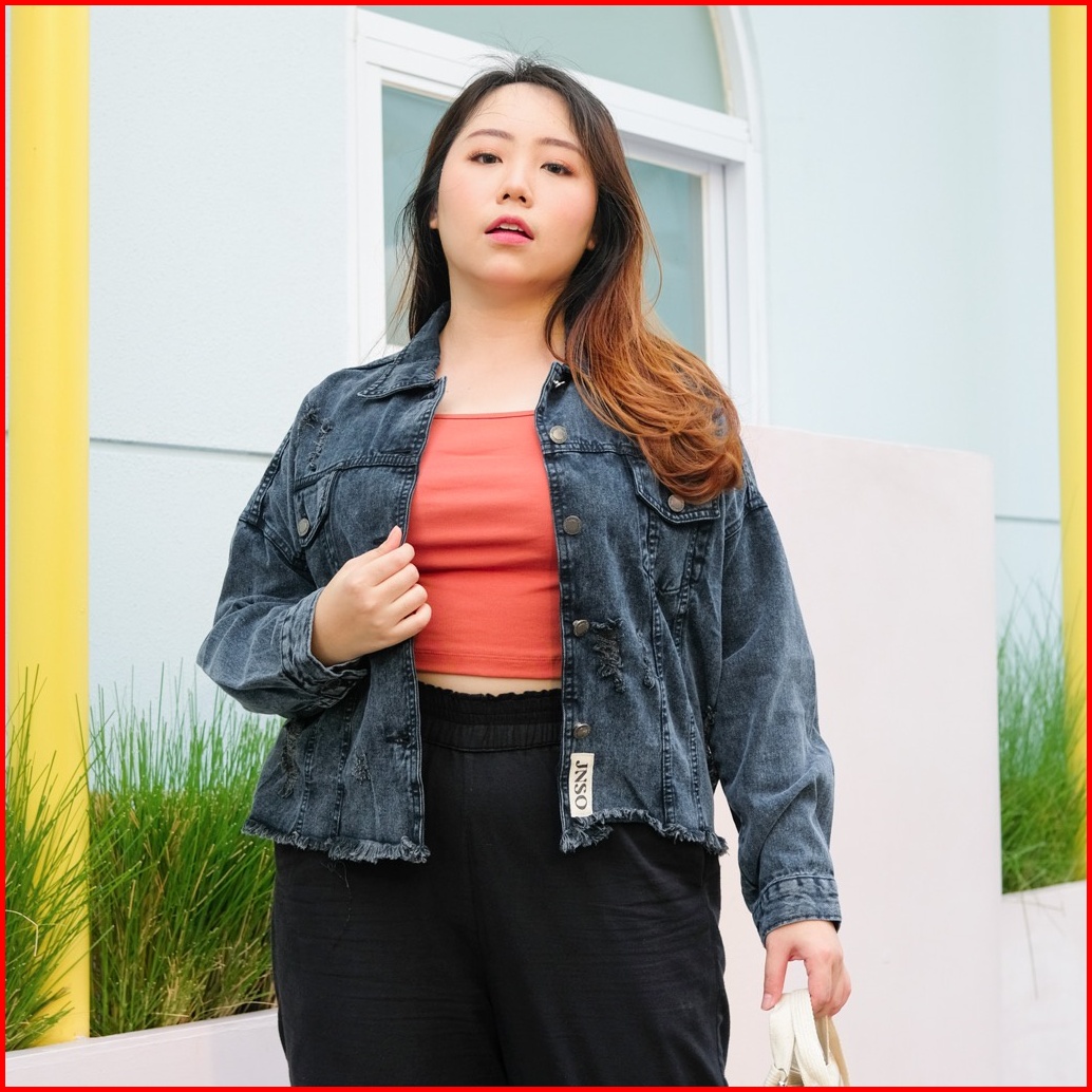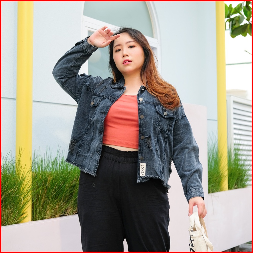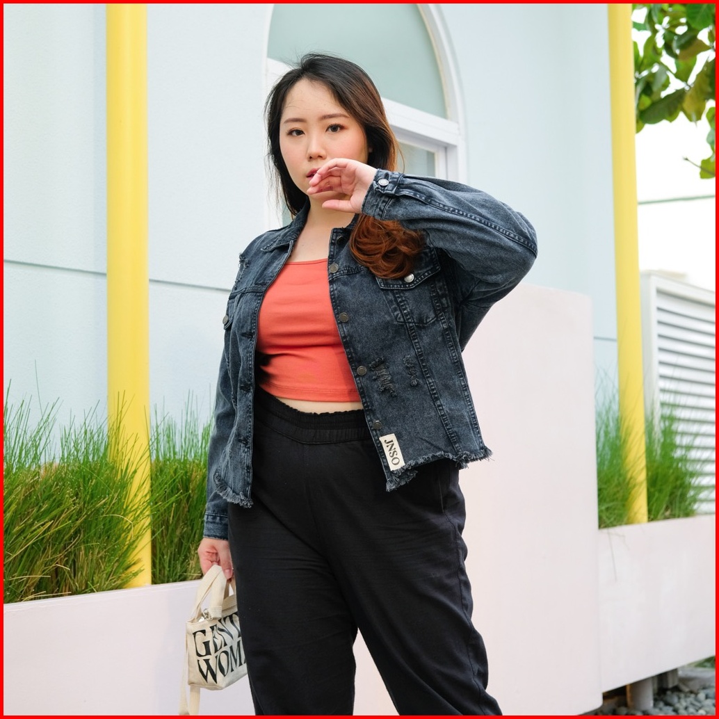 Jiniso Big Size Ripped Jaket Jeans Oversize Vintage Black Acid