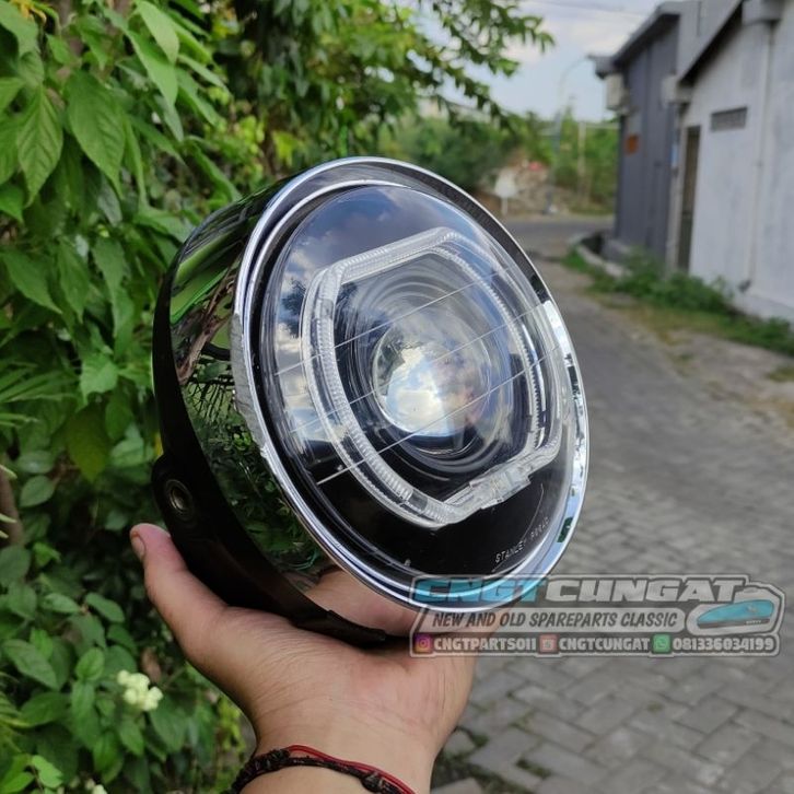 Lampu Reflektor Depan Biled Set Batok Tiger Barong 7 Inch Megapro Scorpio