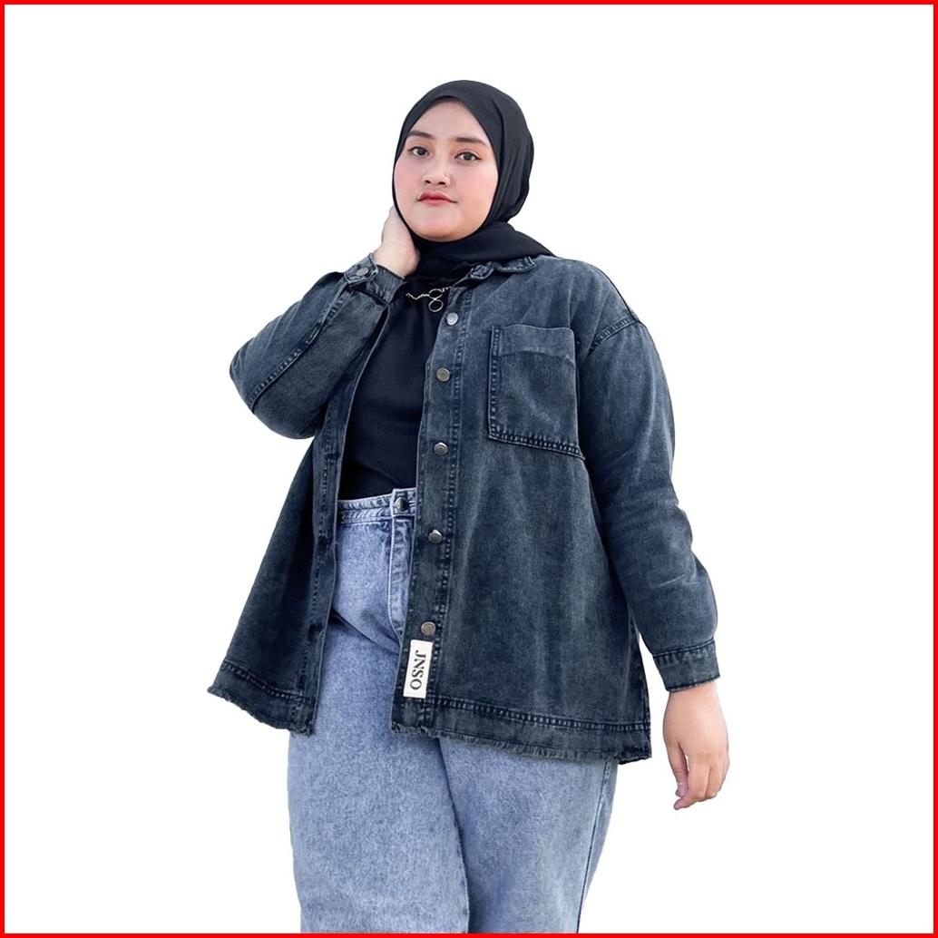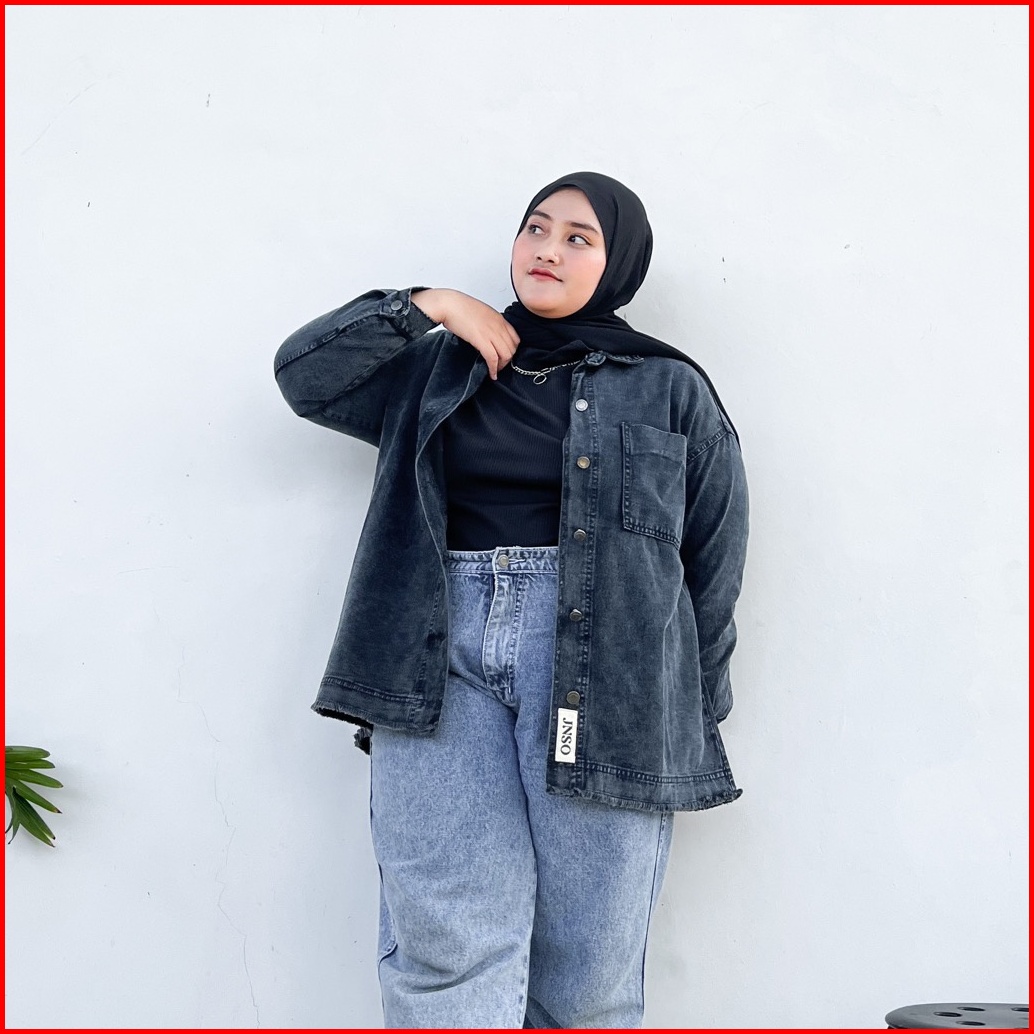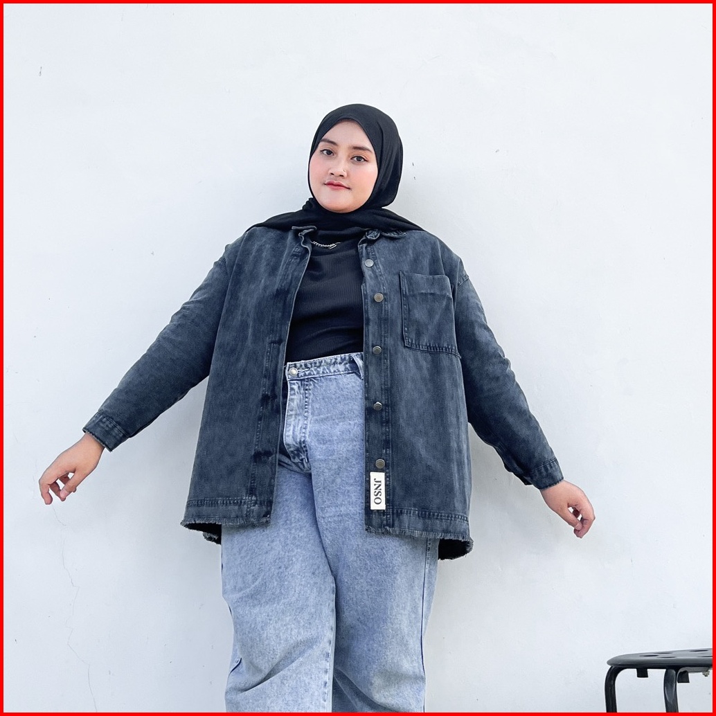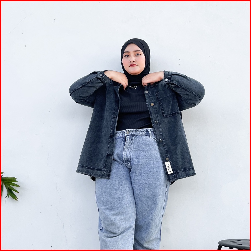 Jiniso Big Size Jaket Jeans Oversize Basic Pocket Black Acid