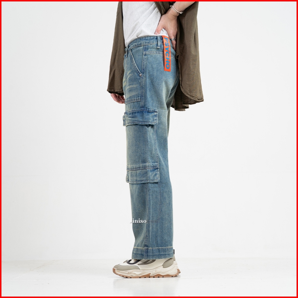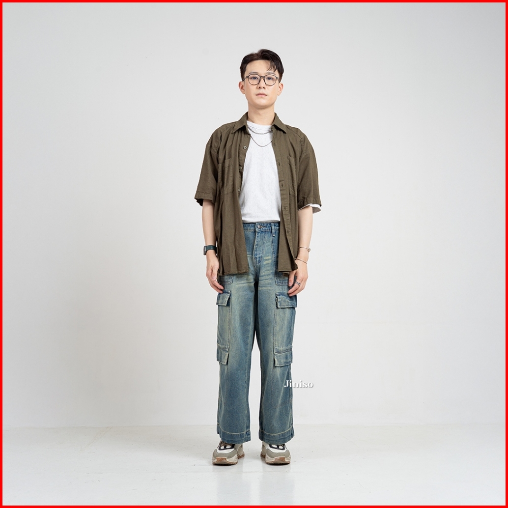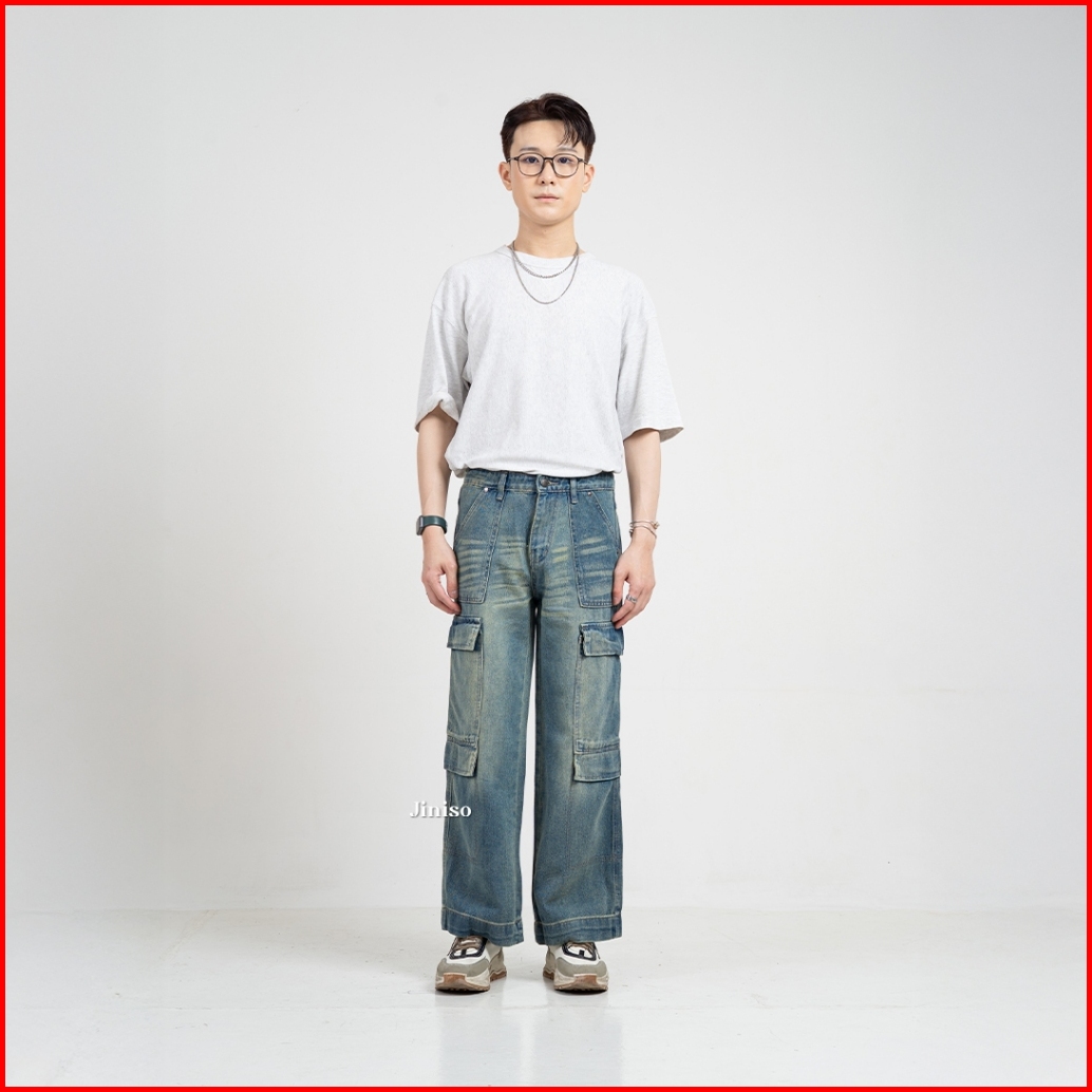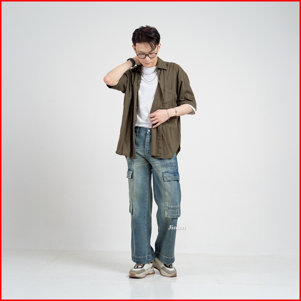 Jiniso Highwaist Cargo Loose Jeans Pria 555