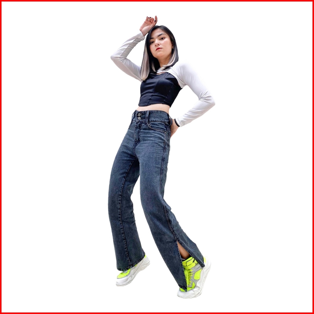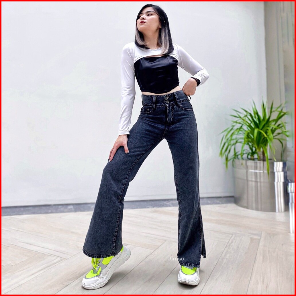 Jiniso - Highwaist Loose Slit Jeans 882 Hangover