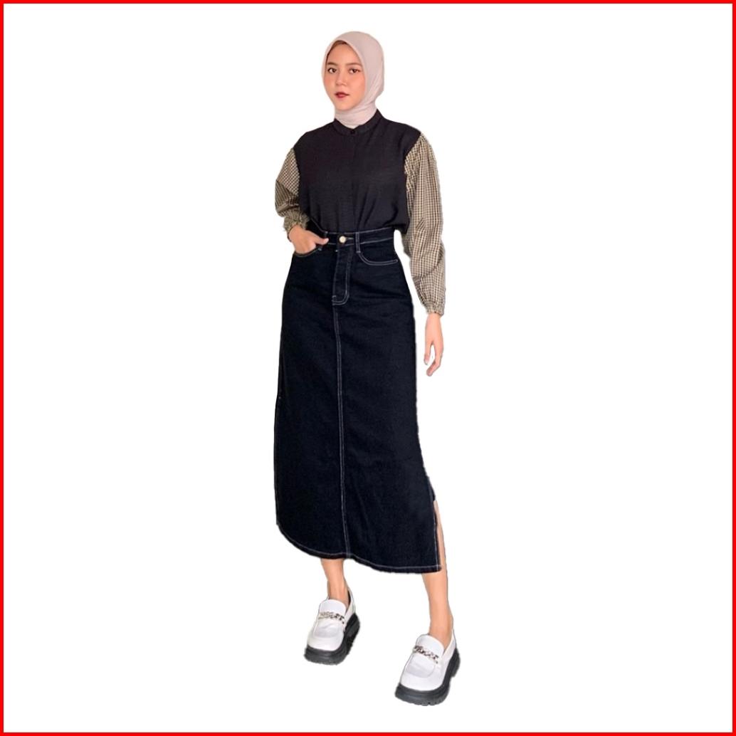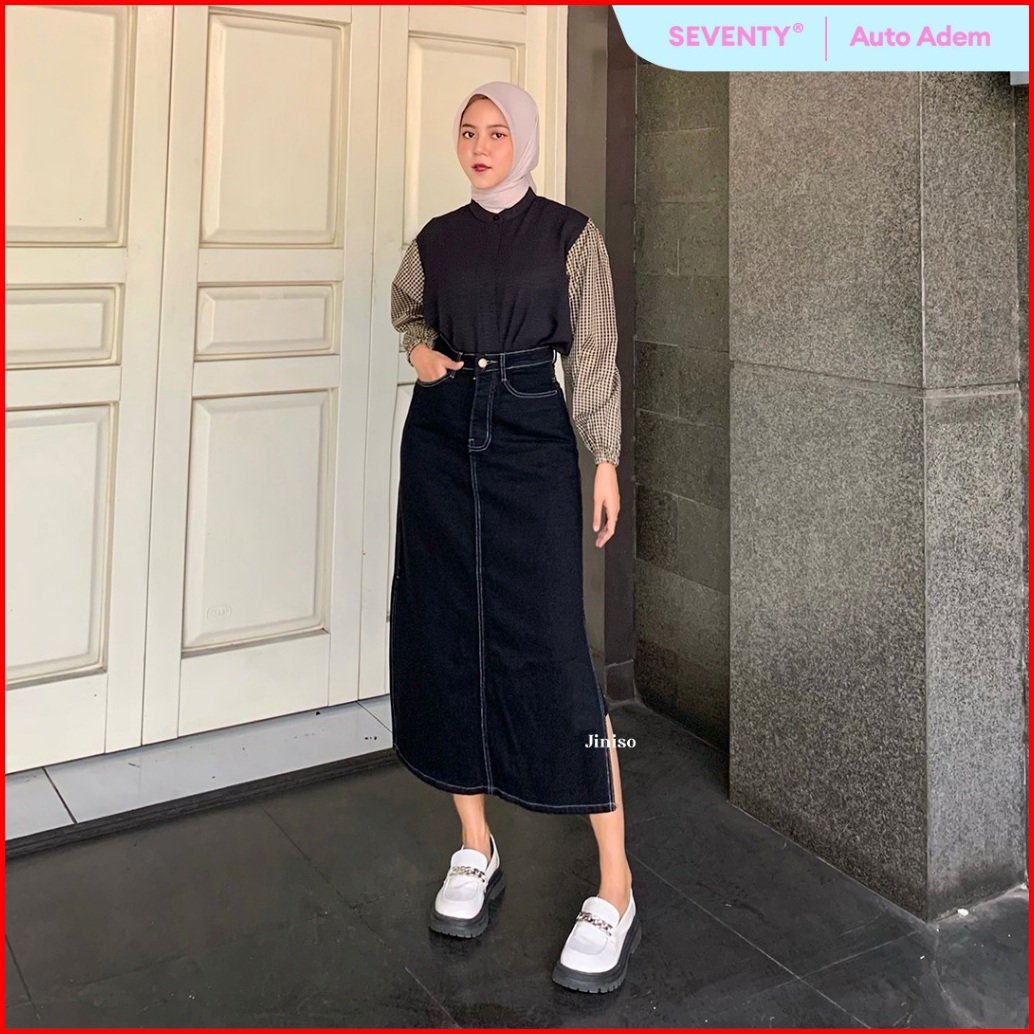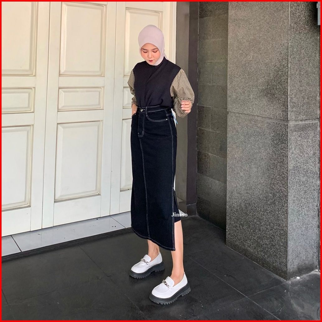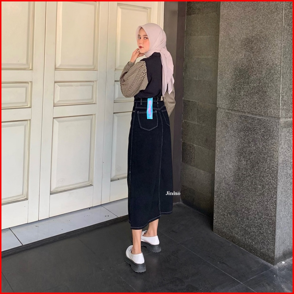Jiniso - Highwaist Rok Slit Jeans Panjang 977 Seventy