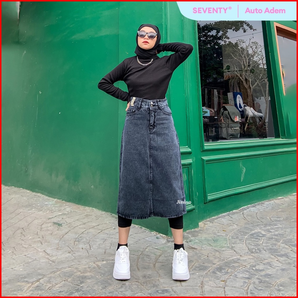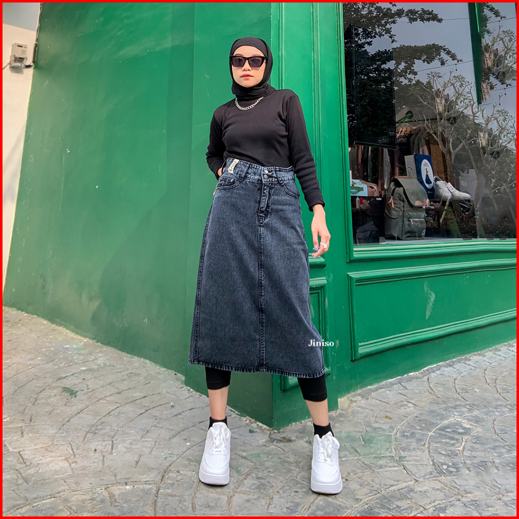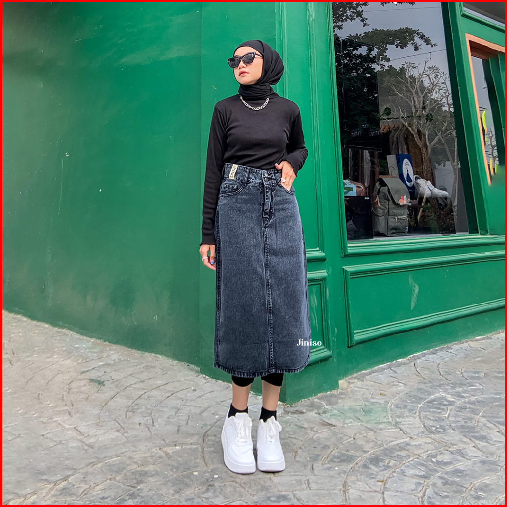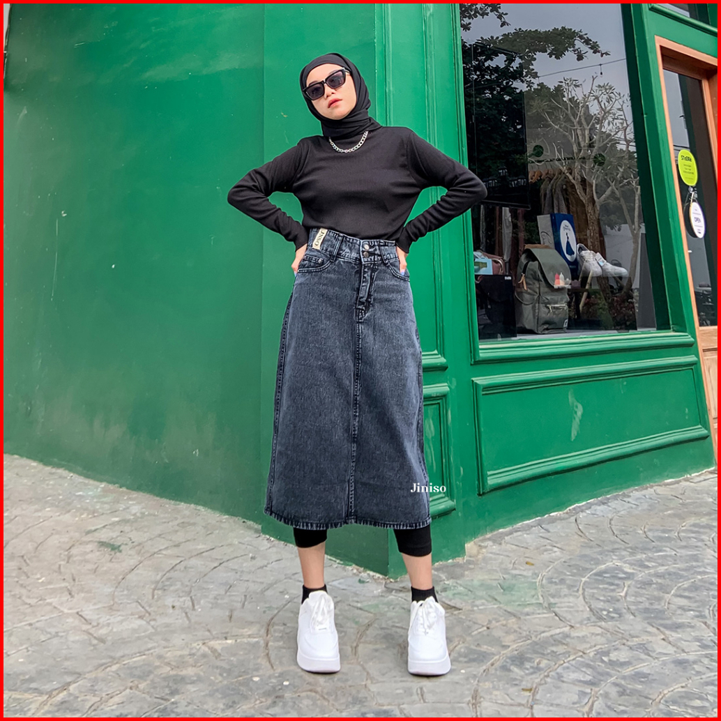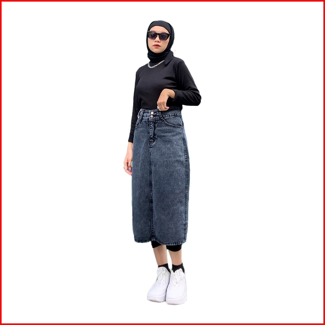 Jiniso - Highwaist Rok Button Jeans Panjang 986 Seventy