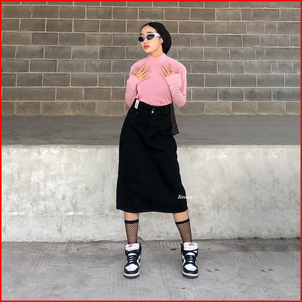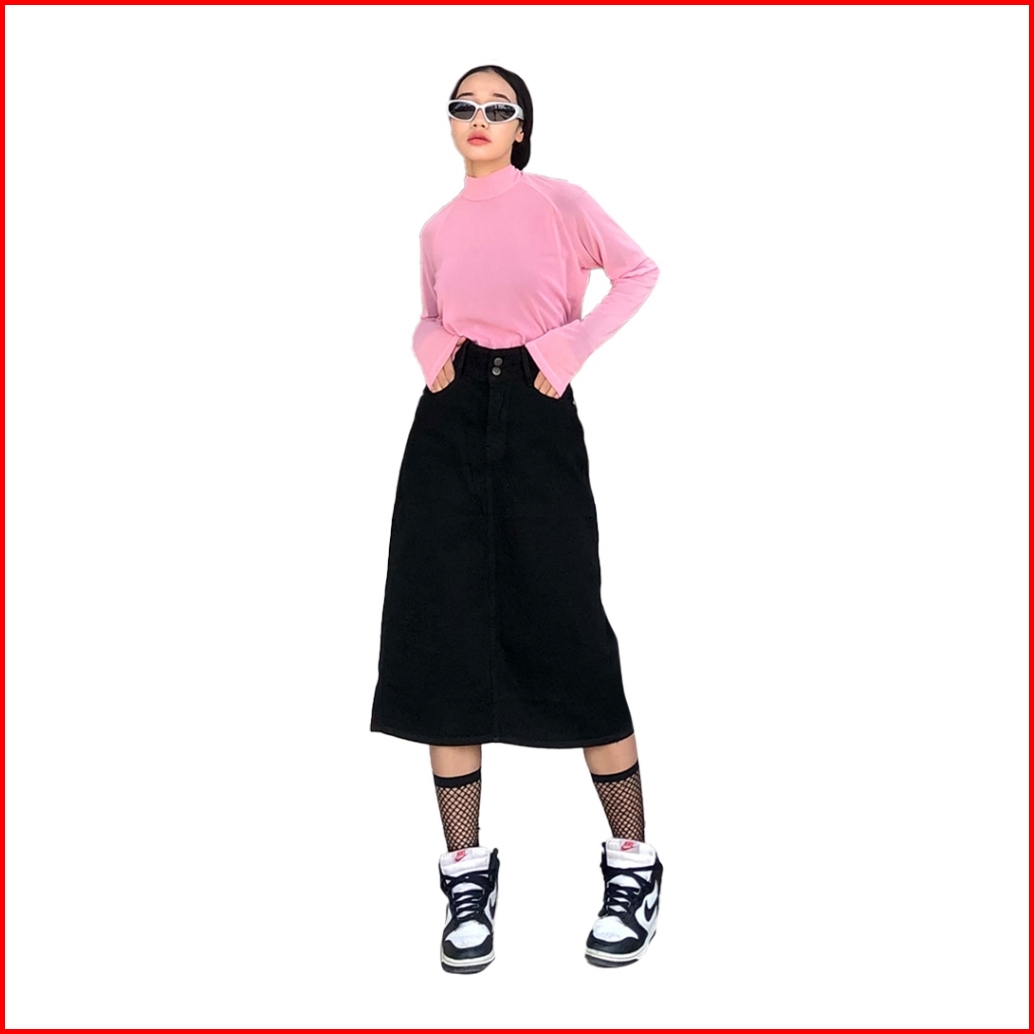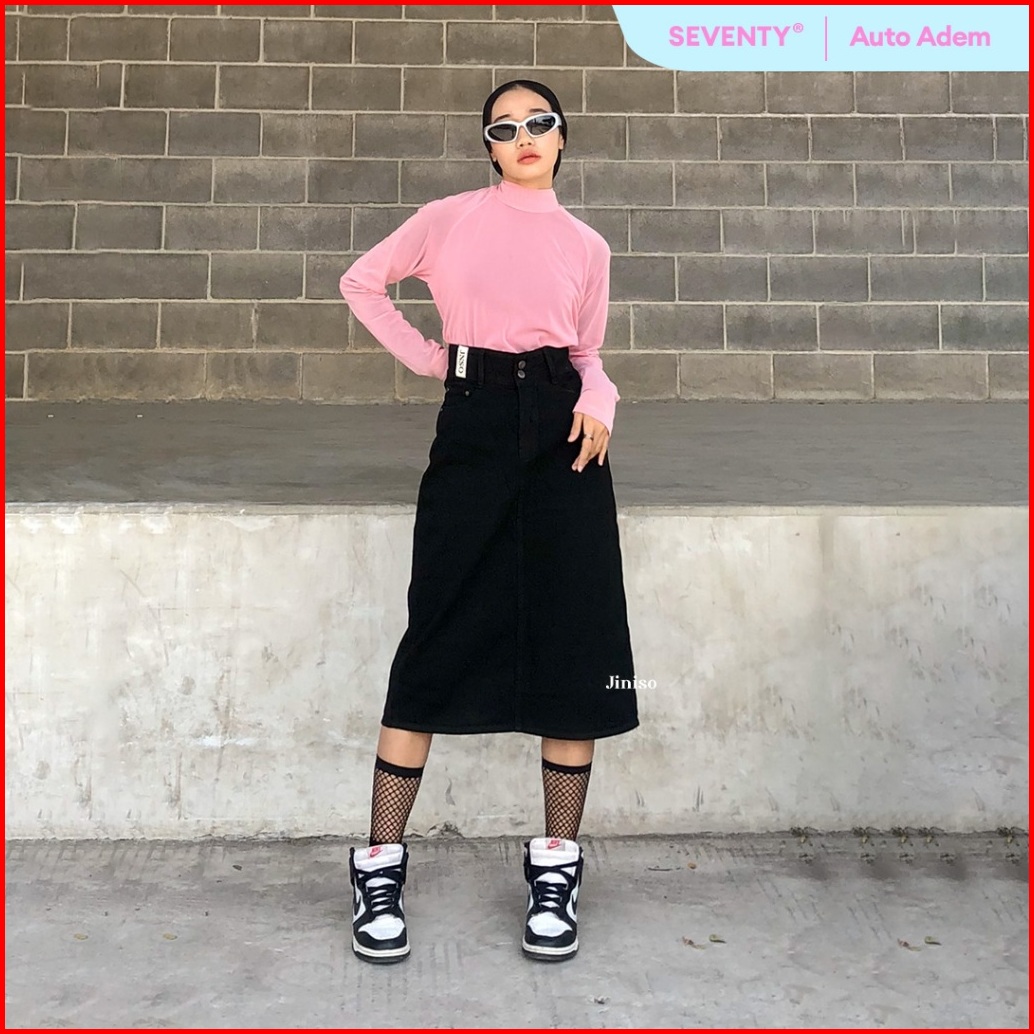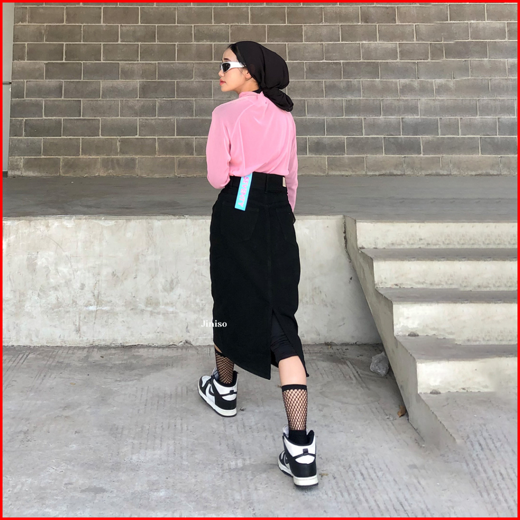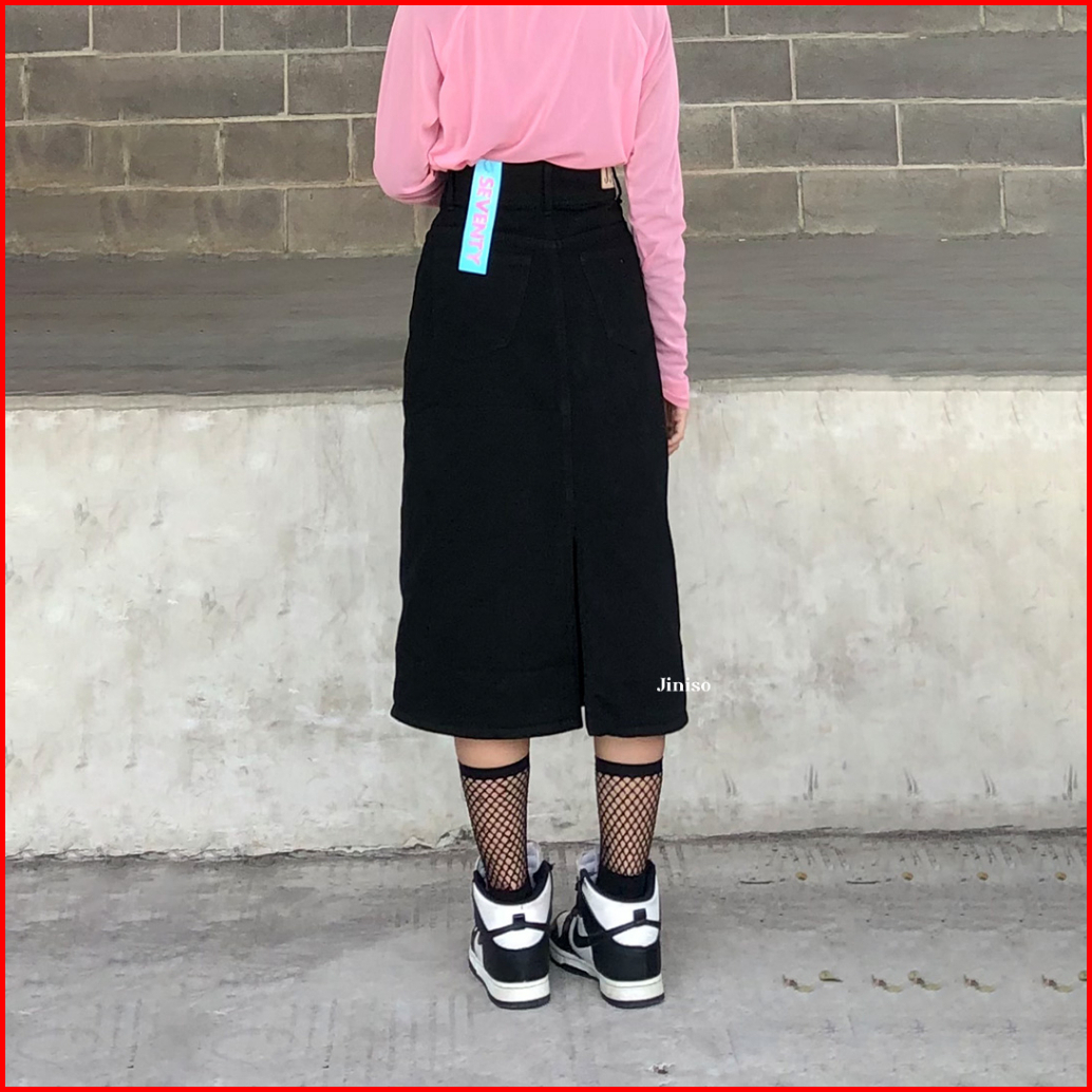 Jiniso - Highwaist Rok Button Jeans Panjang 988 Seventy