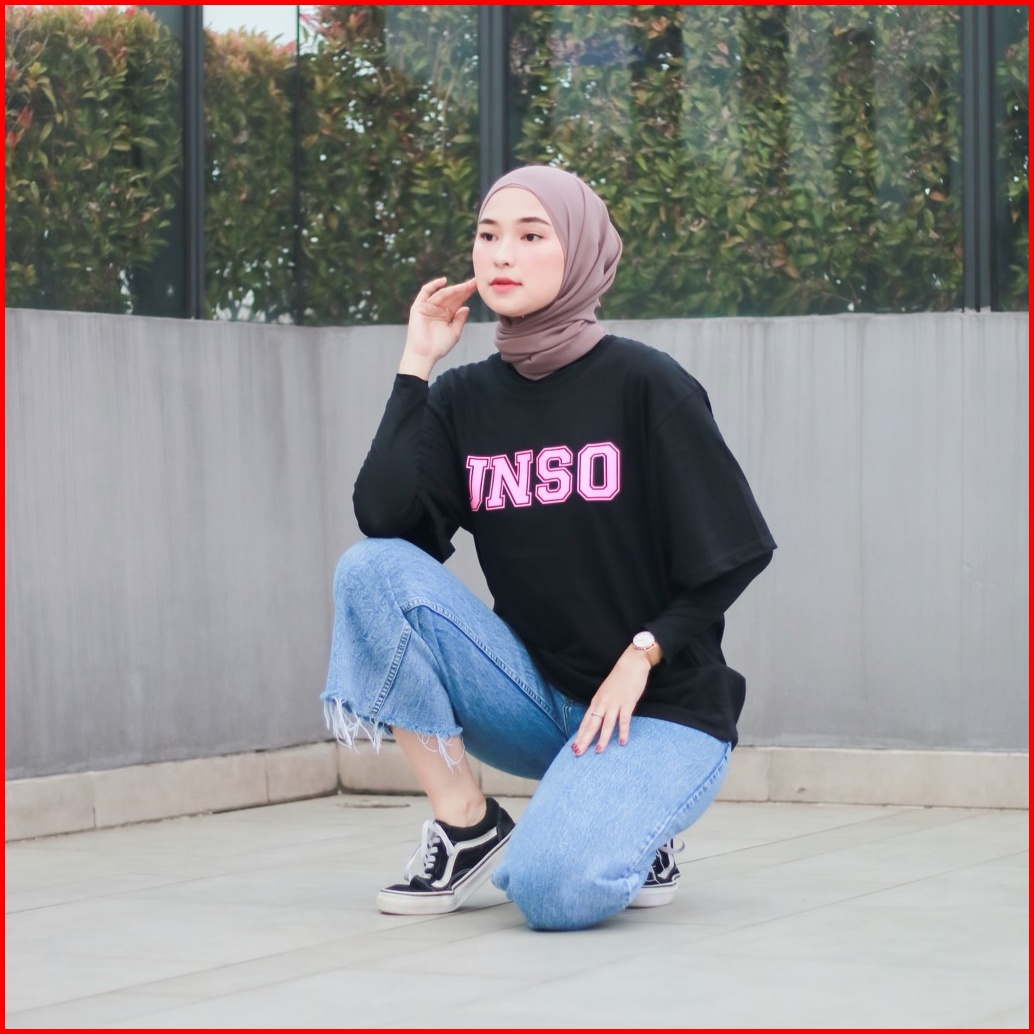Jiniso Kaos Oversize T-shirt Classic Hitam Jnso Pink