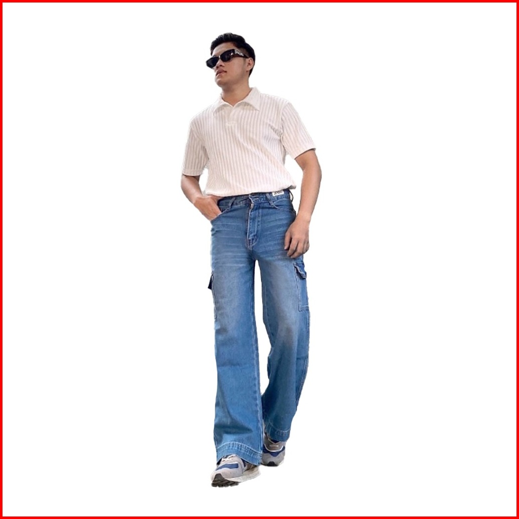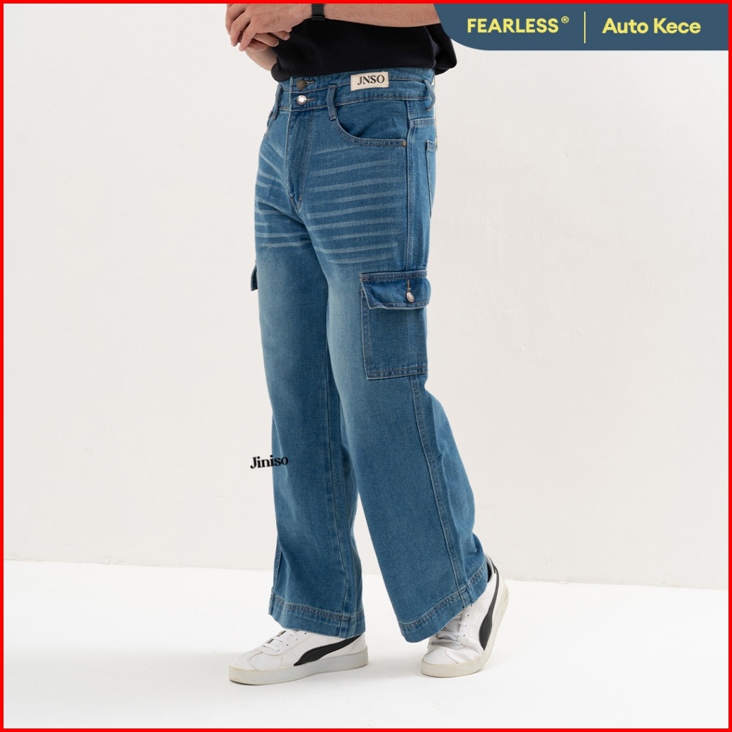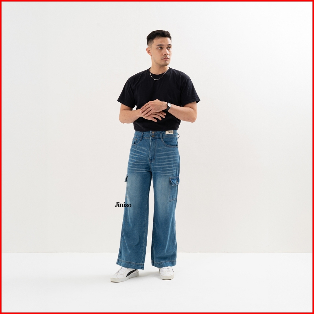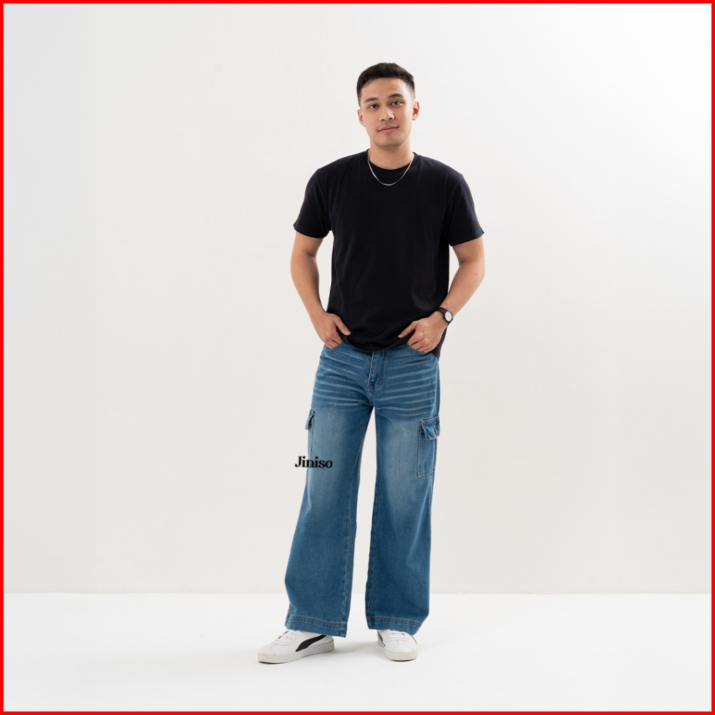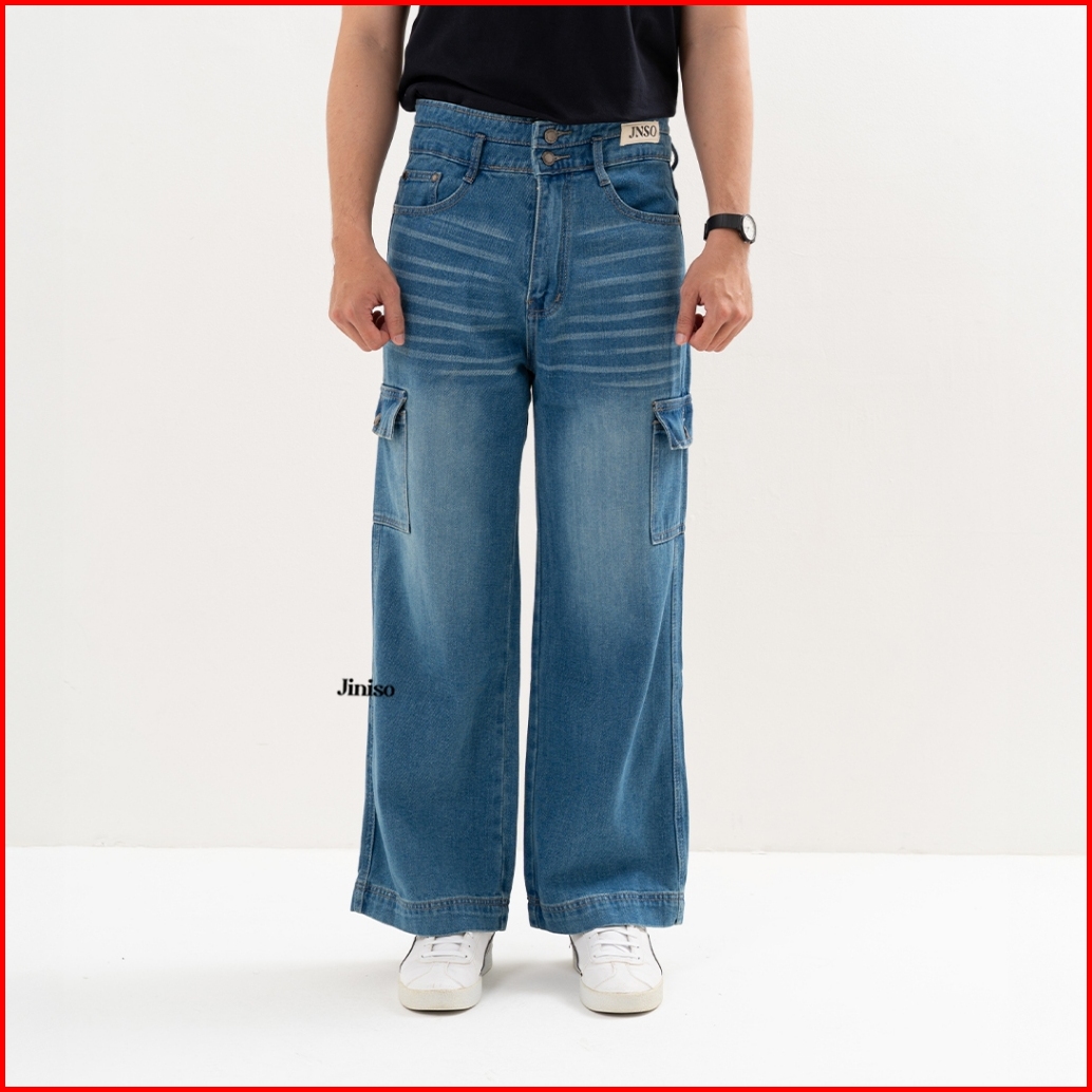 Jiniso Loose Cargo Denim Jeans Pria 461