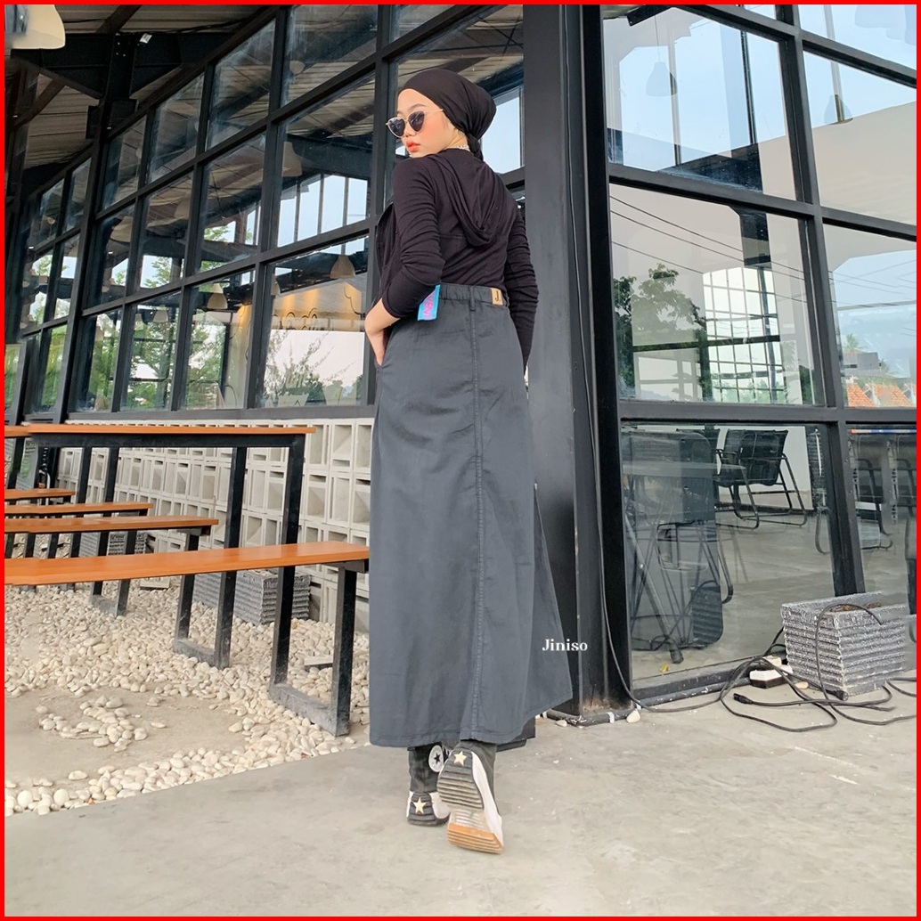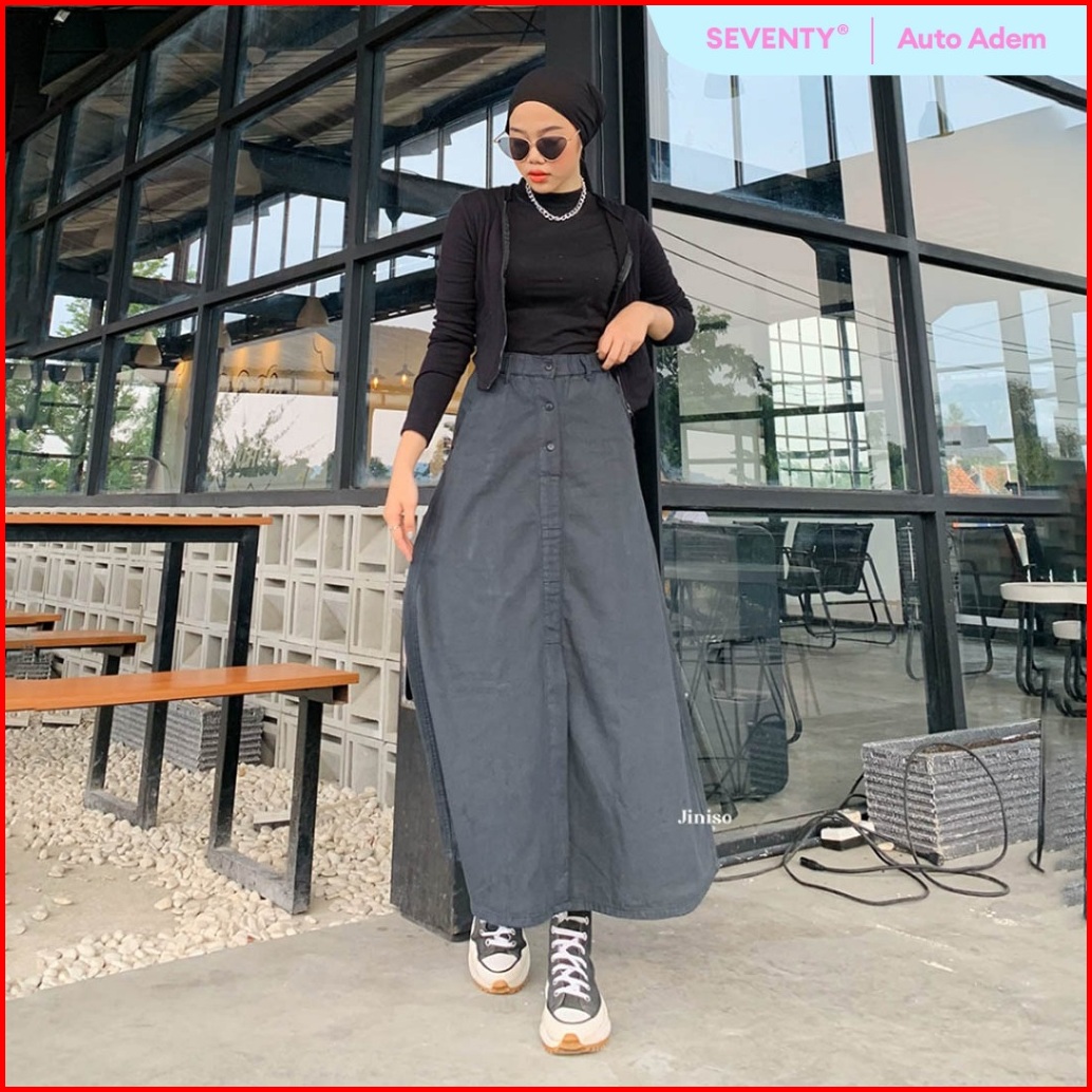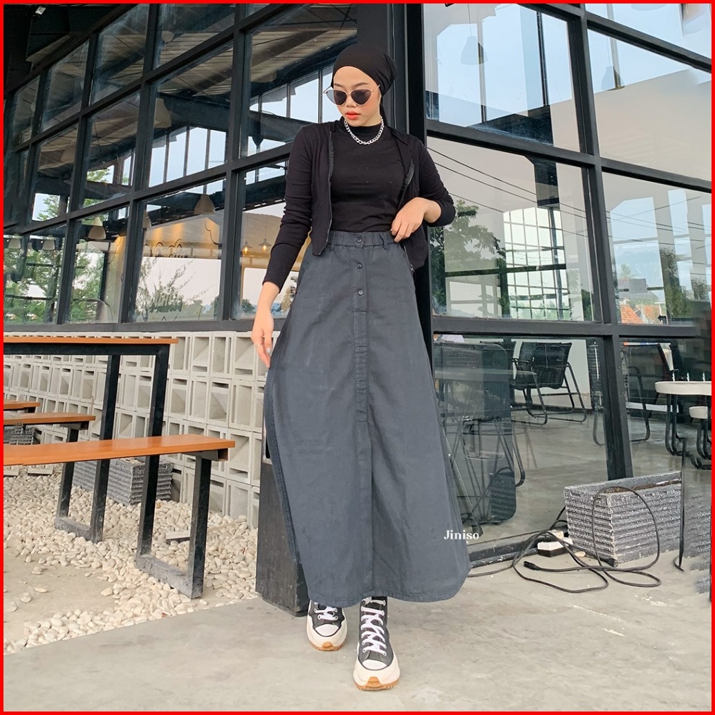 Jiniso - Highwaist Rok Slit Jeans Panjang 995 Seventy