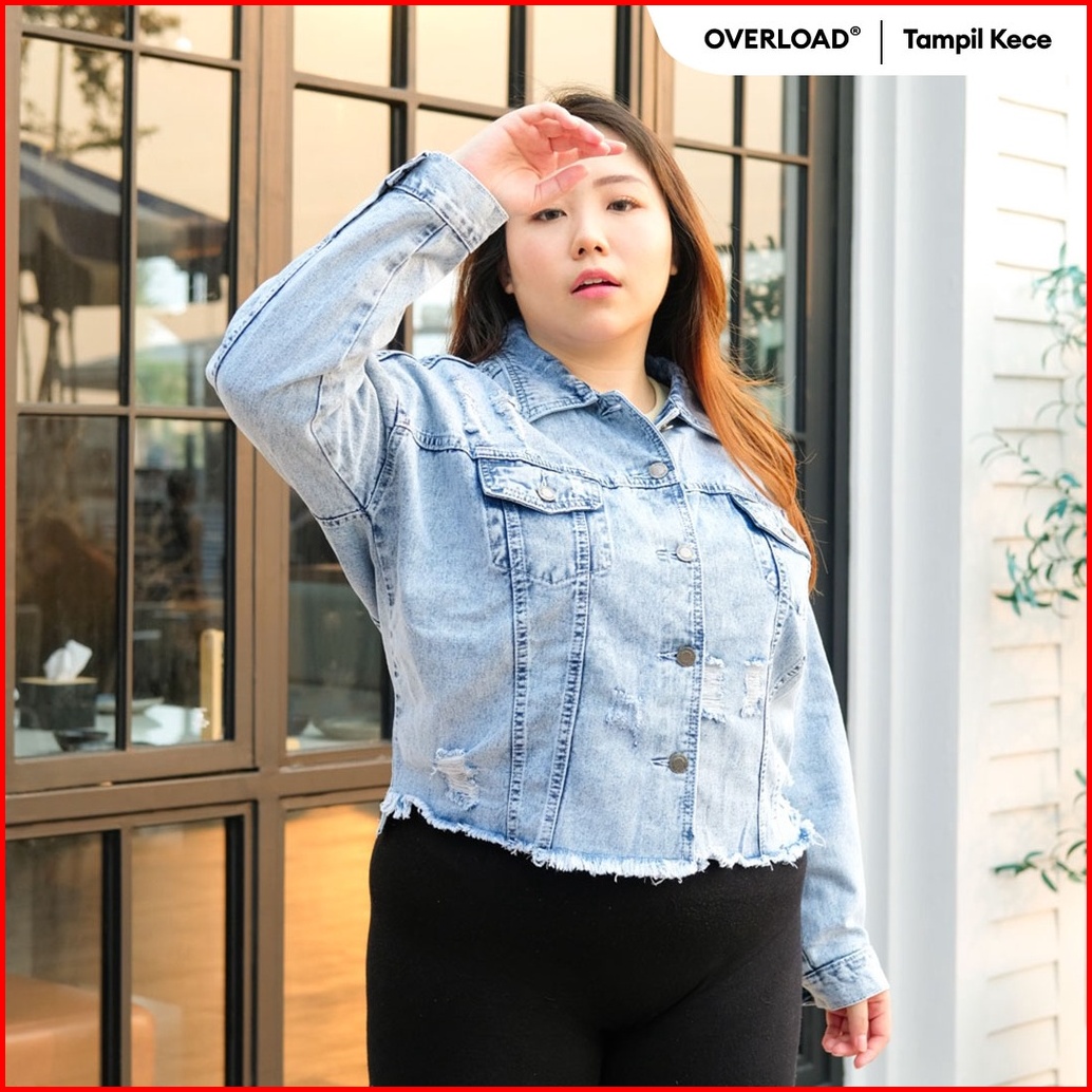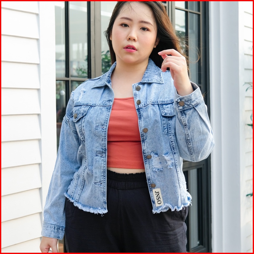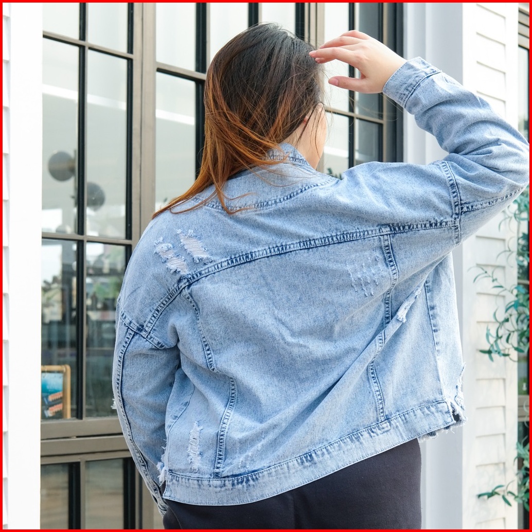 Jiniso Big Size Ripped Jaket Jeans Oversize Vintage Blue Acid