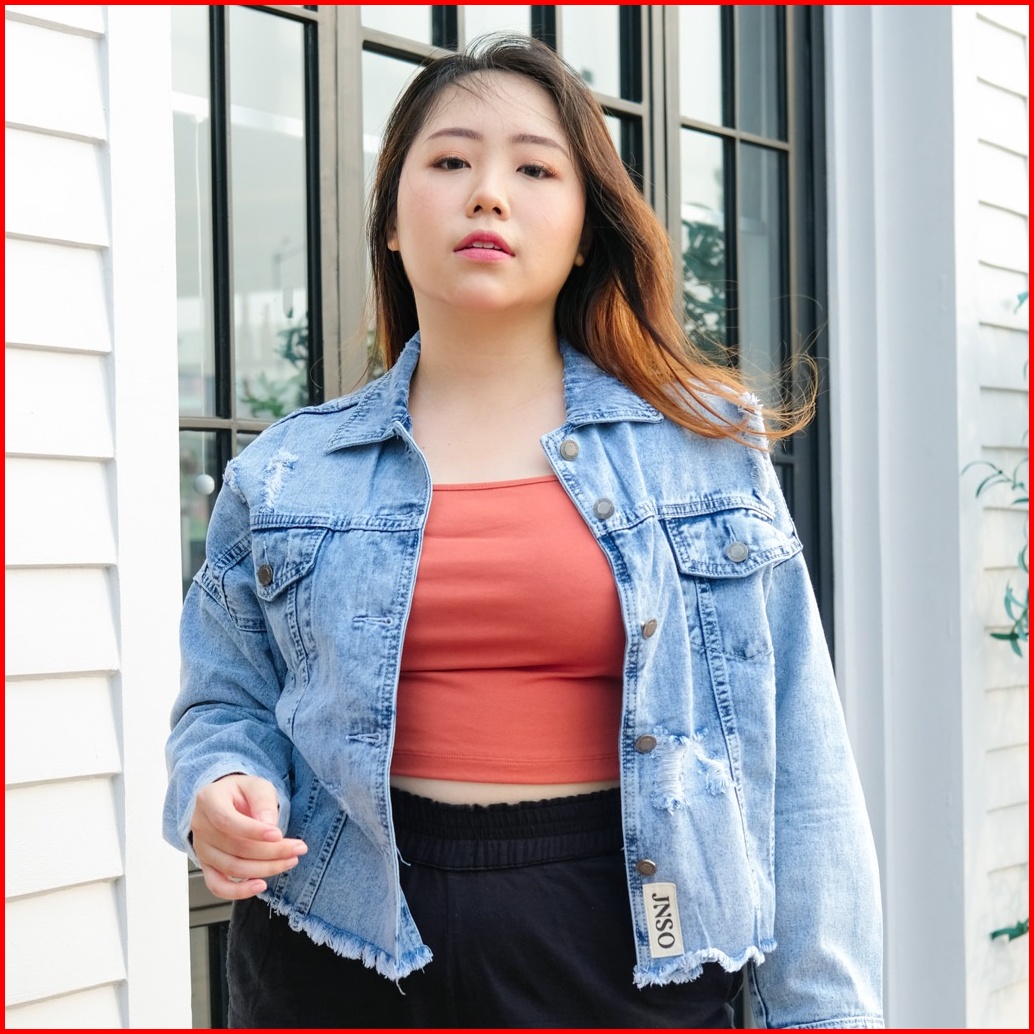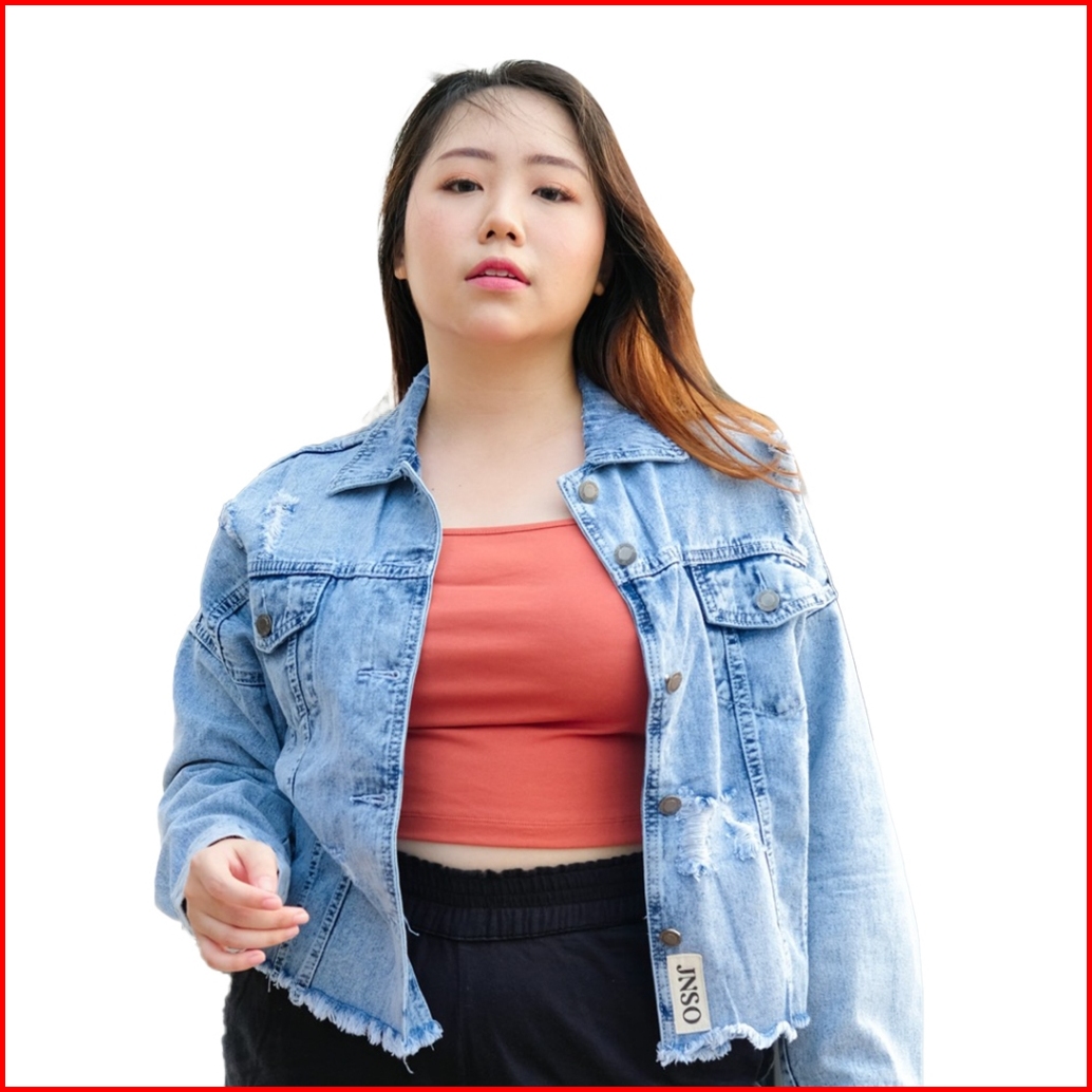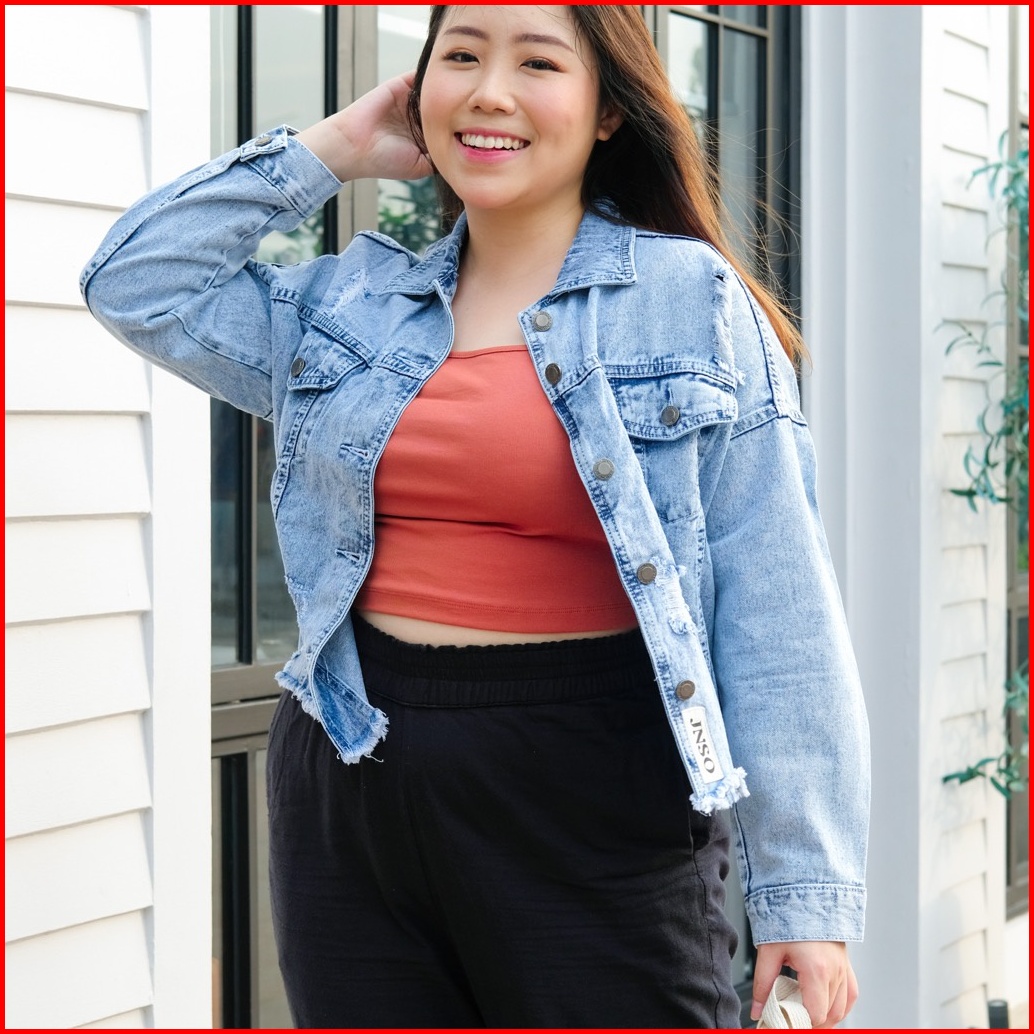 Jiniso Big Size Ripped Jaket Jeans Oversize Vintage Blue Acid