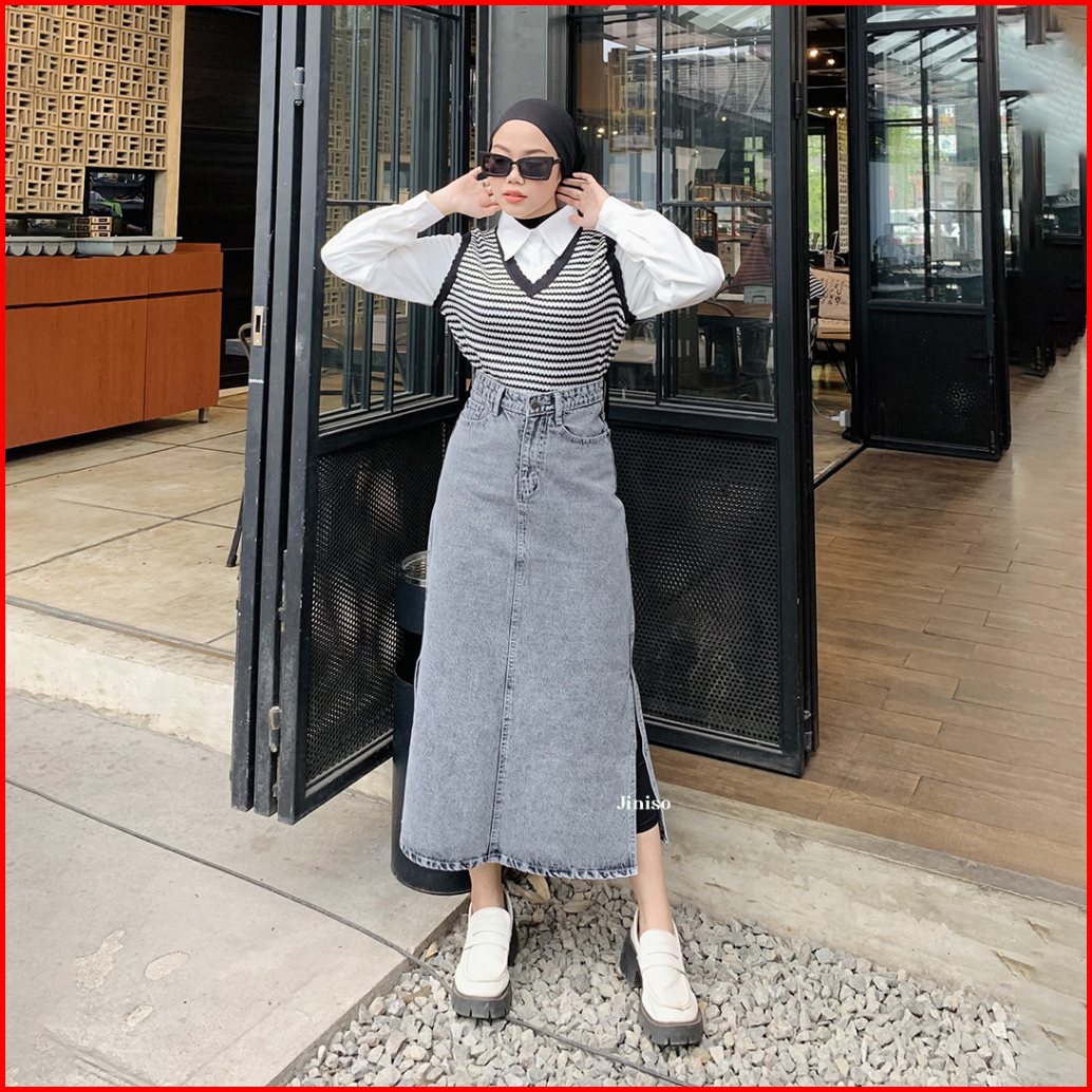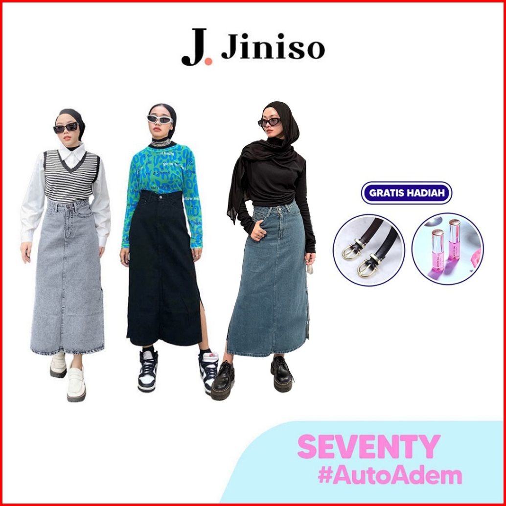 Gratis Hadiah Jiniso - Highwaist Rok Slit Seventy Jeans Panjang Vol. 1