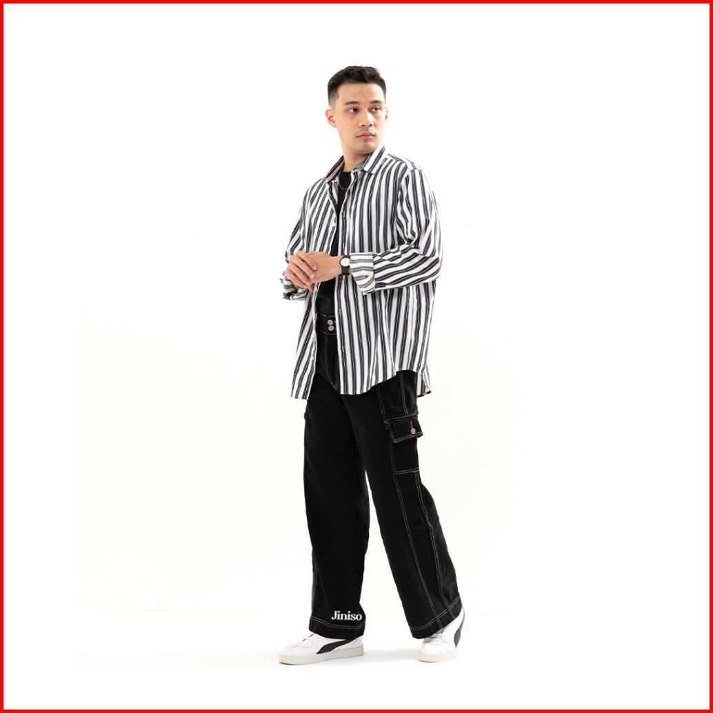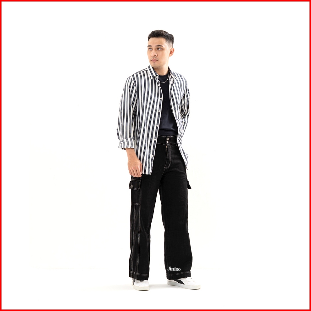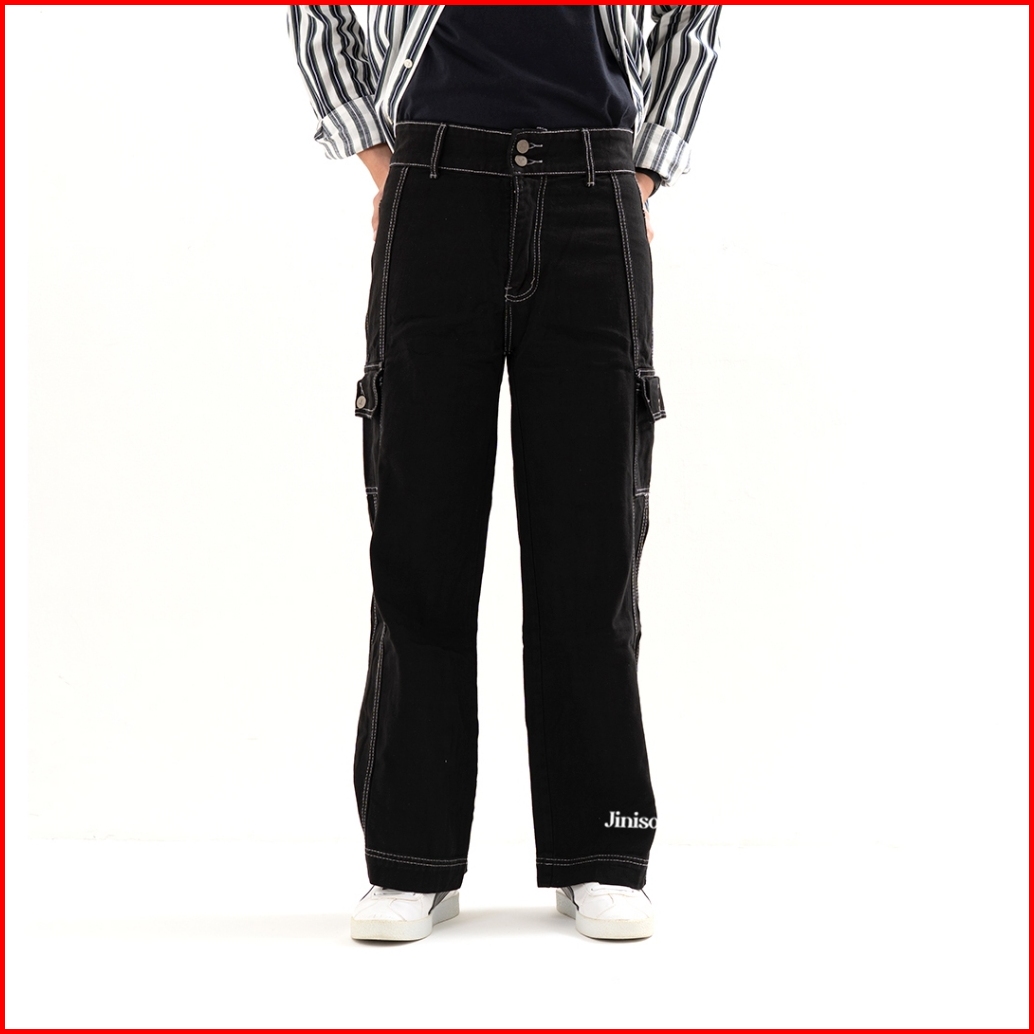 Jiniso Loose Cargo Denim Jeans Pria 402