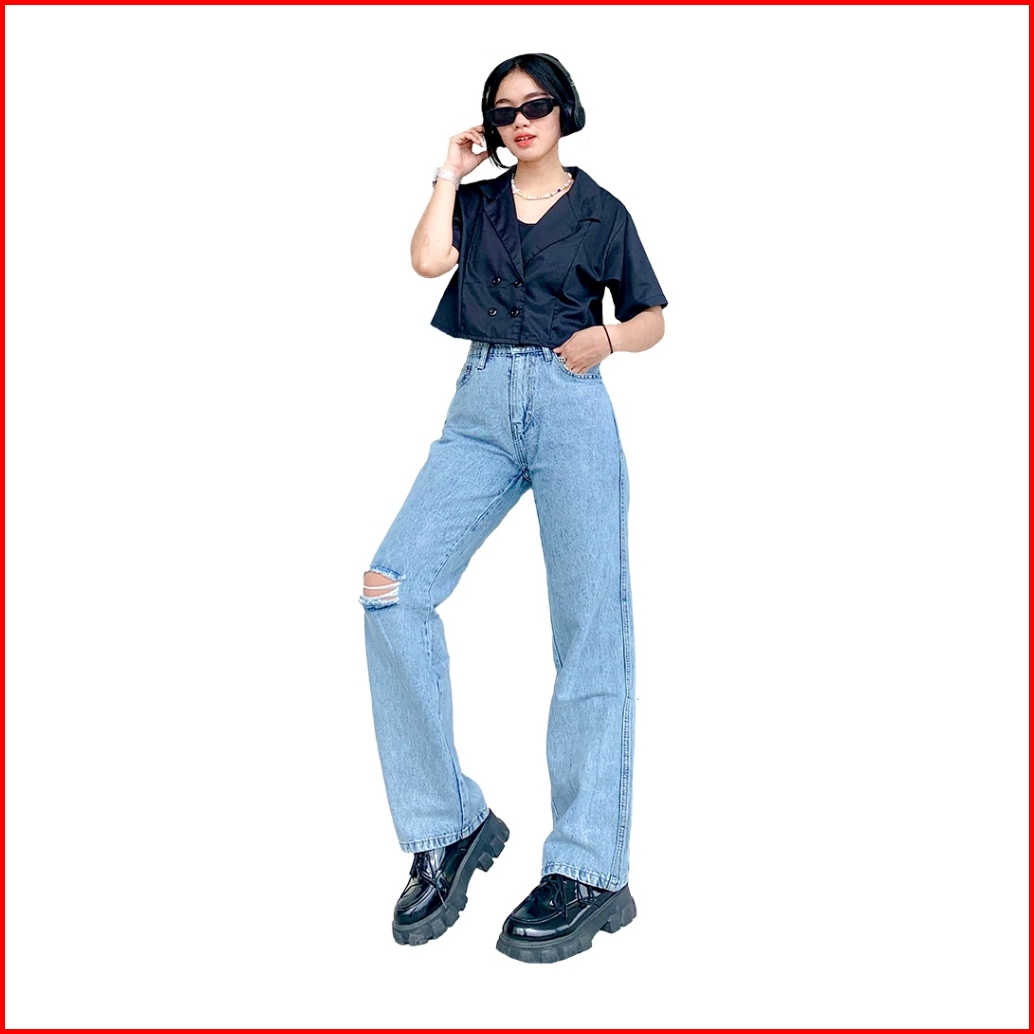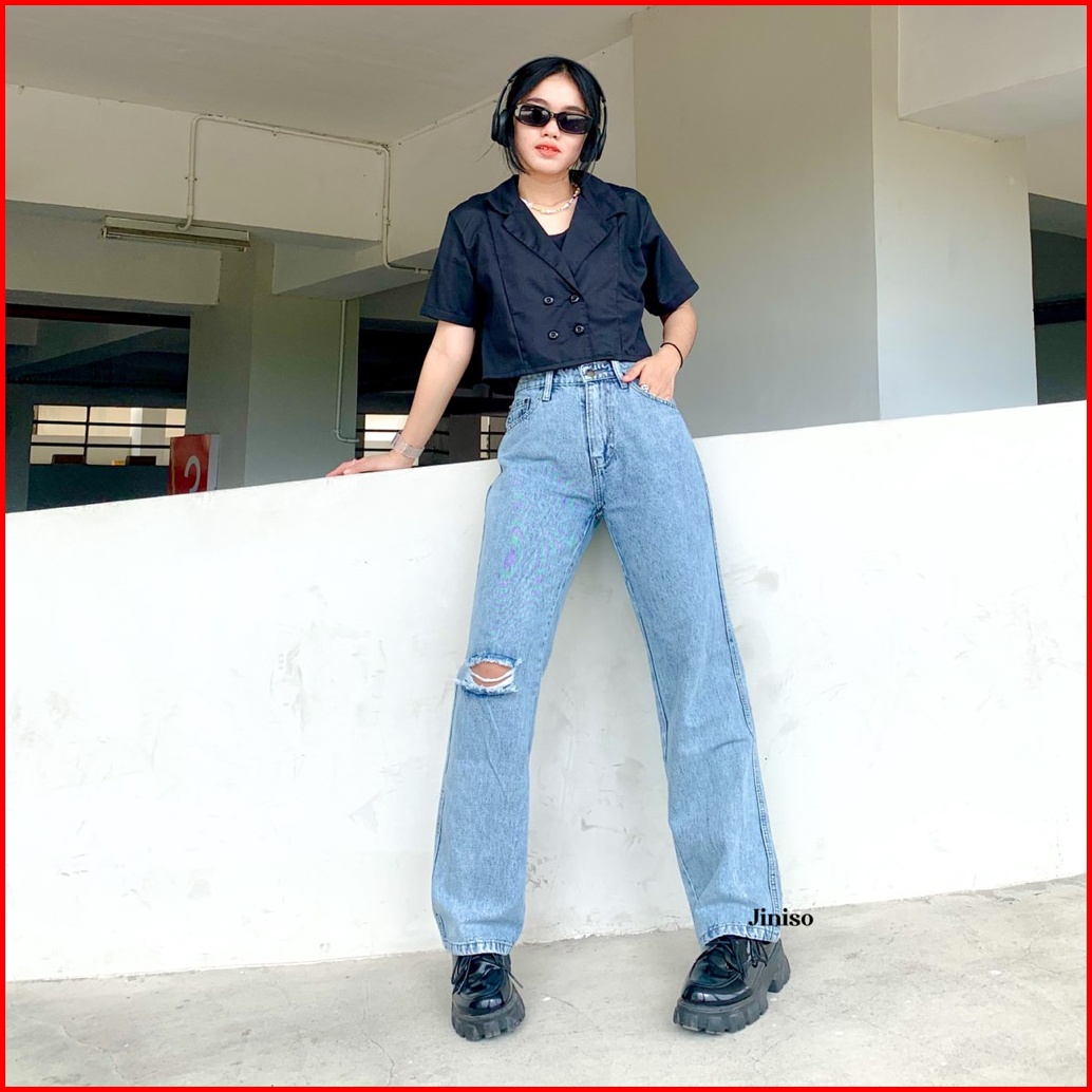 Jiniso - Highwaist Loose Ripped Jeans 844 Mystic Gal