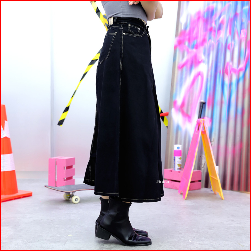 Jiniso - Highwaist Rok Basic Jeans Panjang 975 Seventy