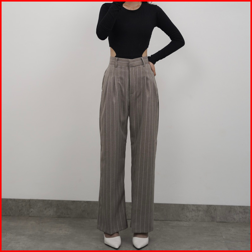 Kuma Pants - Loose Pants Stripe Trouser Wanita - Celana Anti Kusut - Celana Kulot Wanita