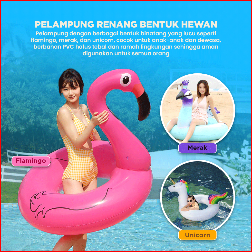 Pelampung Ban Renang Dewasa Flamingo Warna Pink Merak Biru Unicorn One Best Art