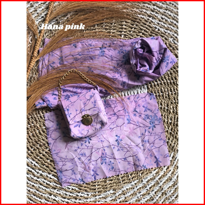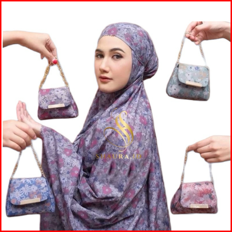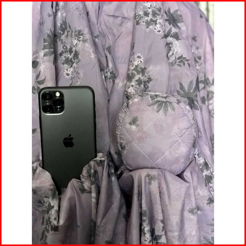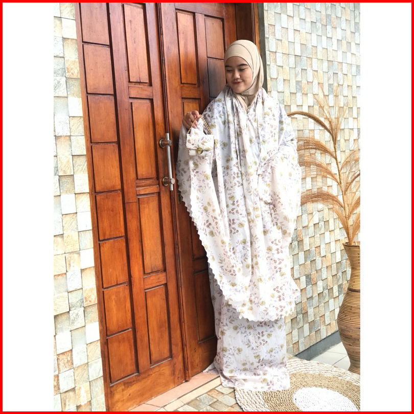 Mukena Dewasa Travelling Mini Pouch Parasut Korea 2in1 Lasercut Motif Bunga Free Sajadah