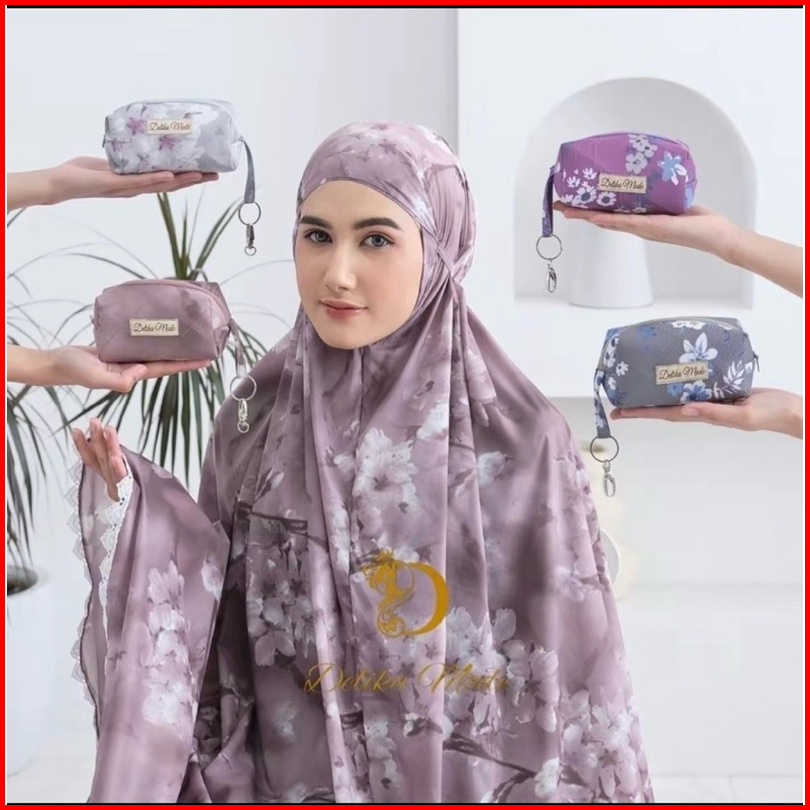 Mukena Travel Mini Parasut Korea 2in1 Pouch Resleting