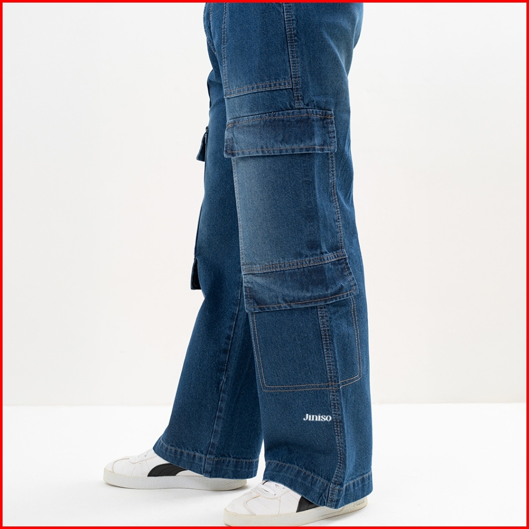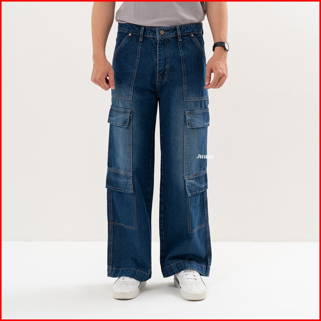 Jiniso Highwaist Cargo Loose Jeans Pria 554