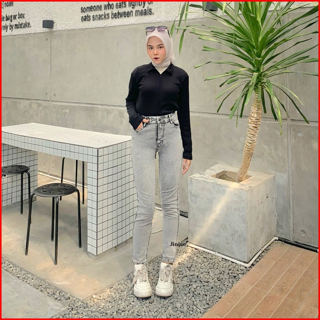 Jiniso - Highwaist Boyfriend Stretch Jeans 205 Rise Up