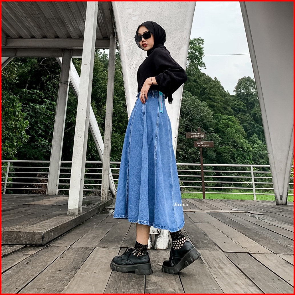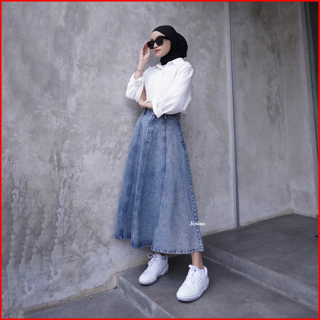Gratis Hadiah Jiniso - Highwaist Rok A-line Seventy Jeans Panjang