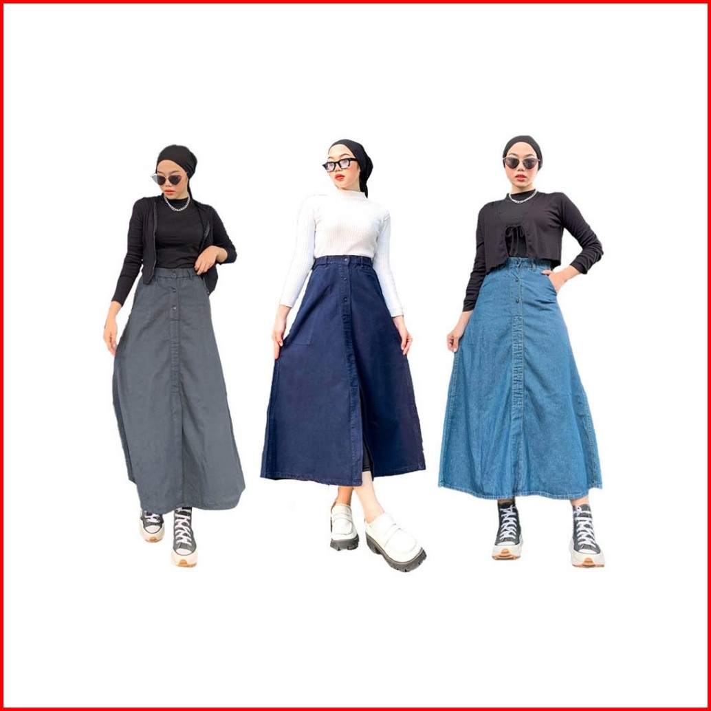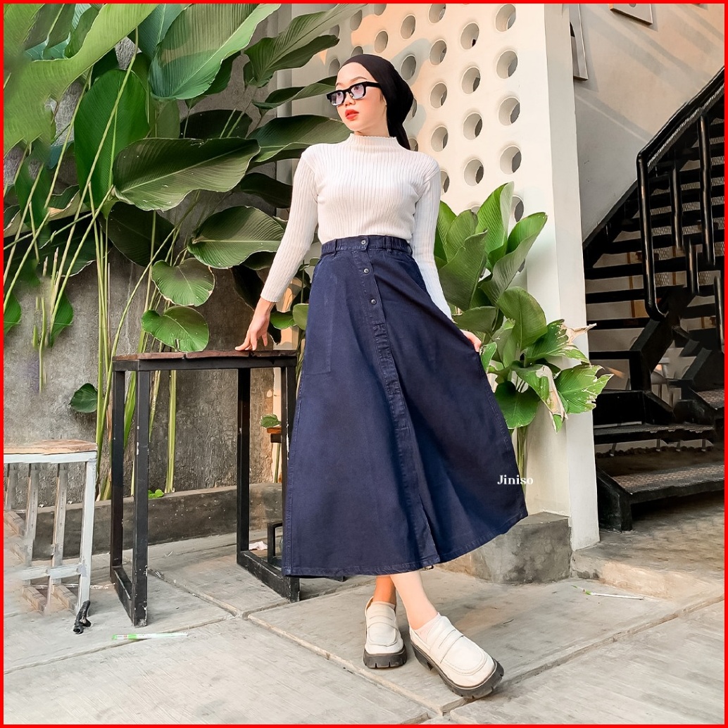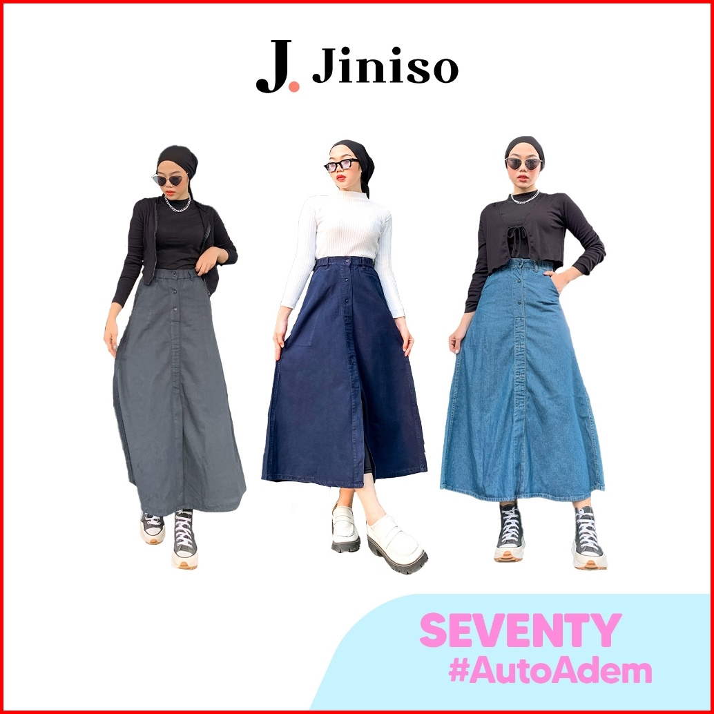 Jiniso - Highwaist Rok Slit Seventy Jeans Panjang Vol. 2