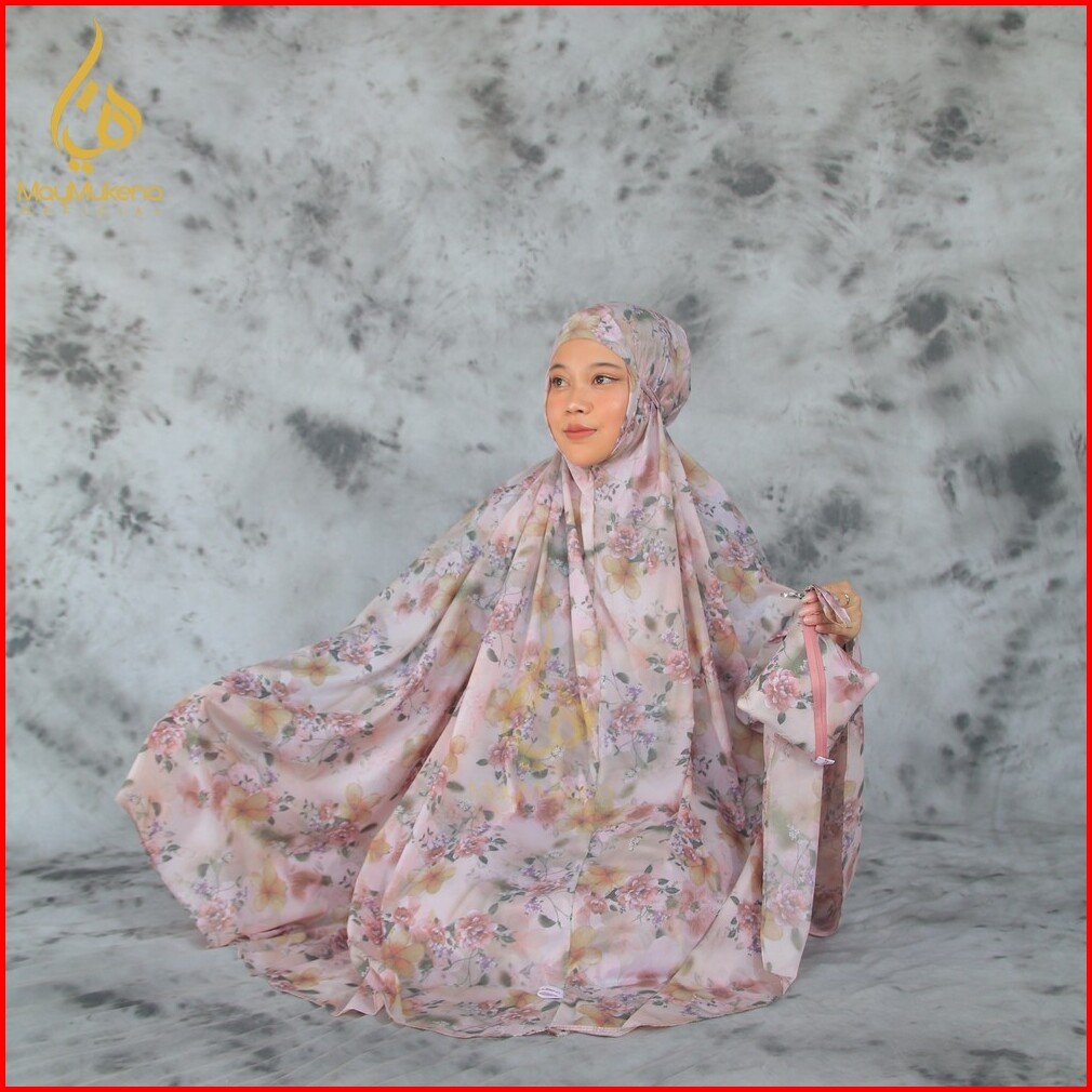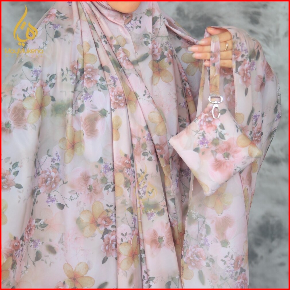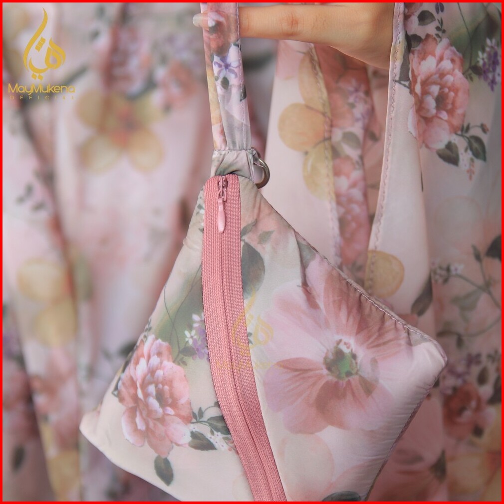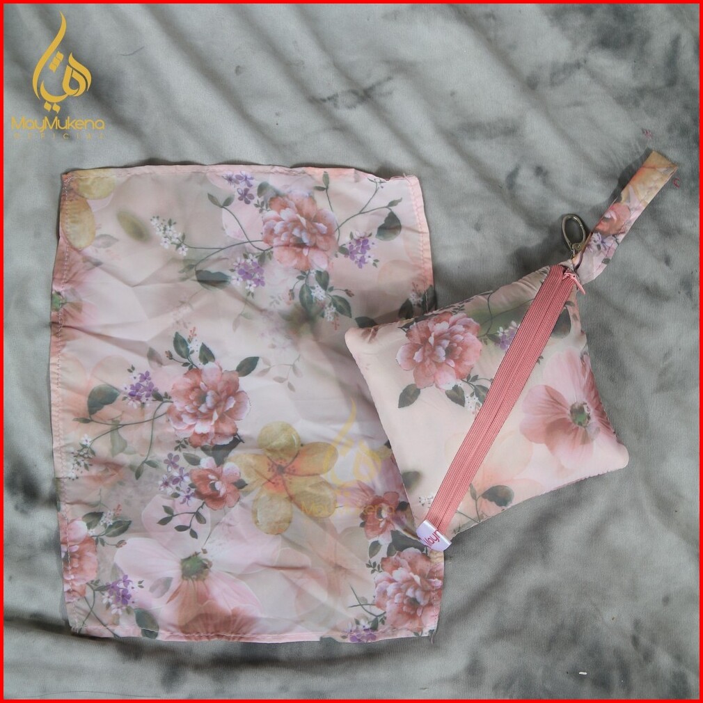 Mukena Traveling Mini Pouch 2in1 Resleting Dagu Parasut Korea Motif Sakura Series