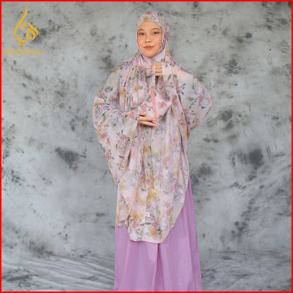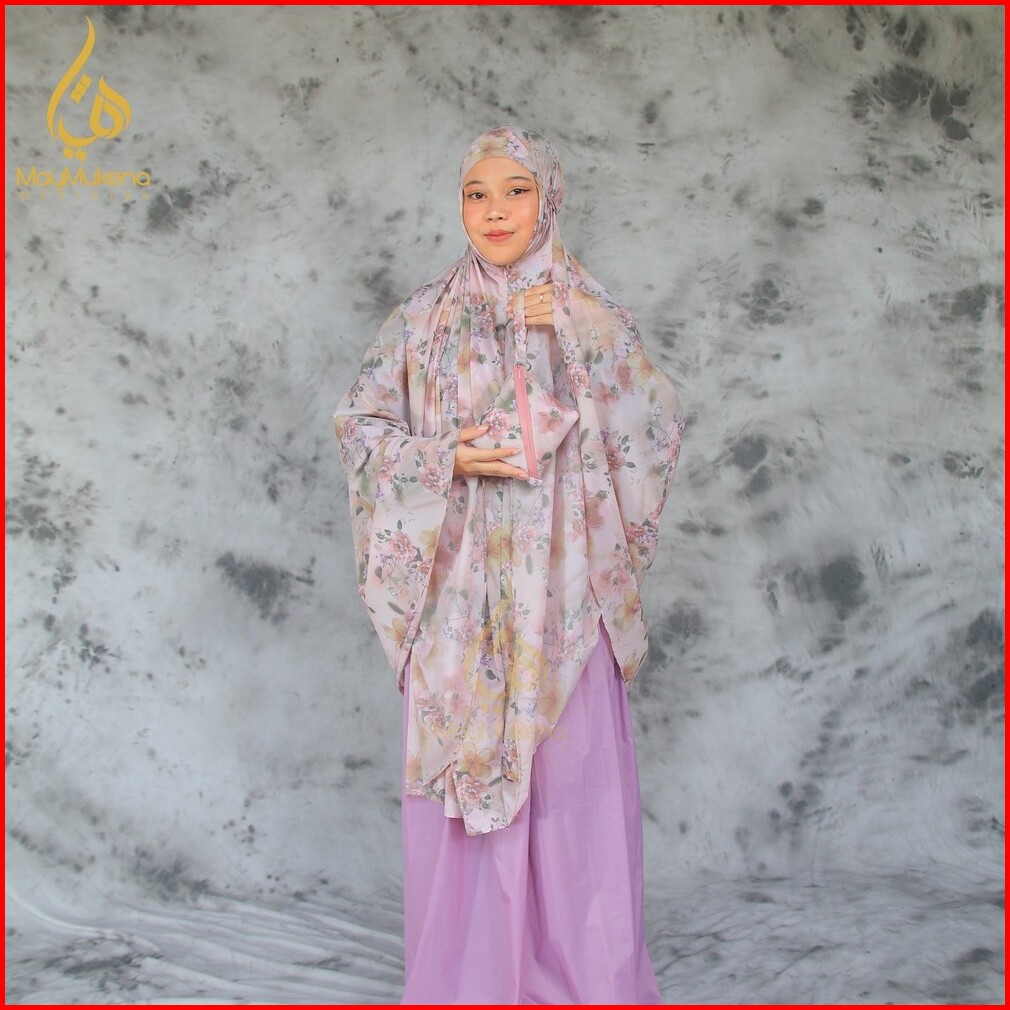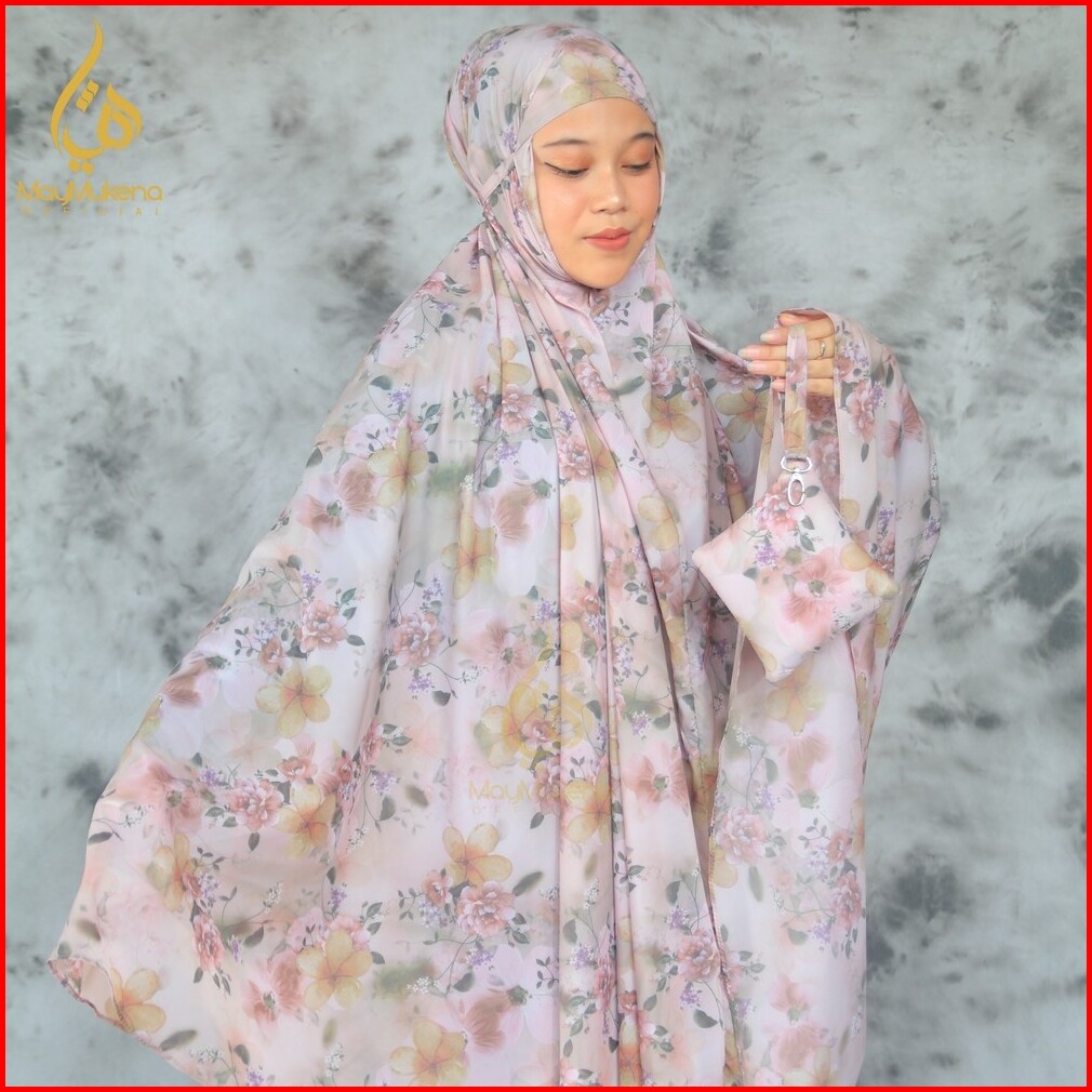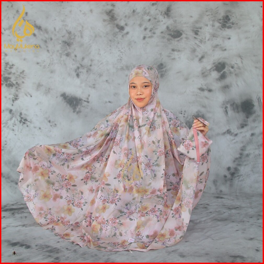 Mukena Traveling Mini Pouch 2in1 Resleting Dagu Parasut Korea Motif Sakura Series