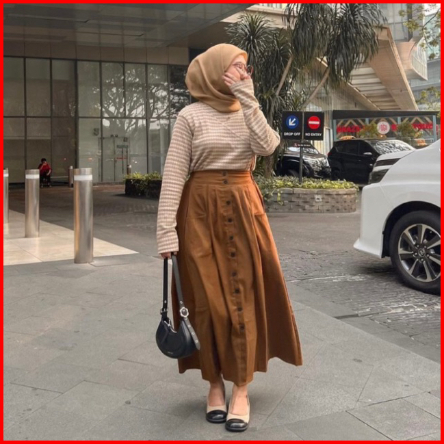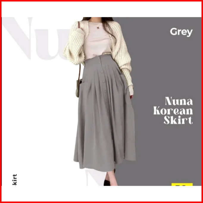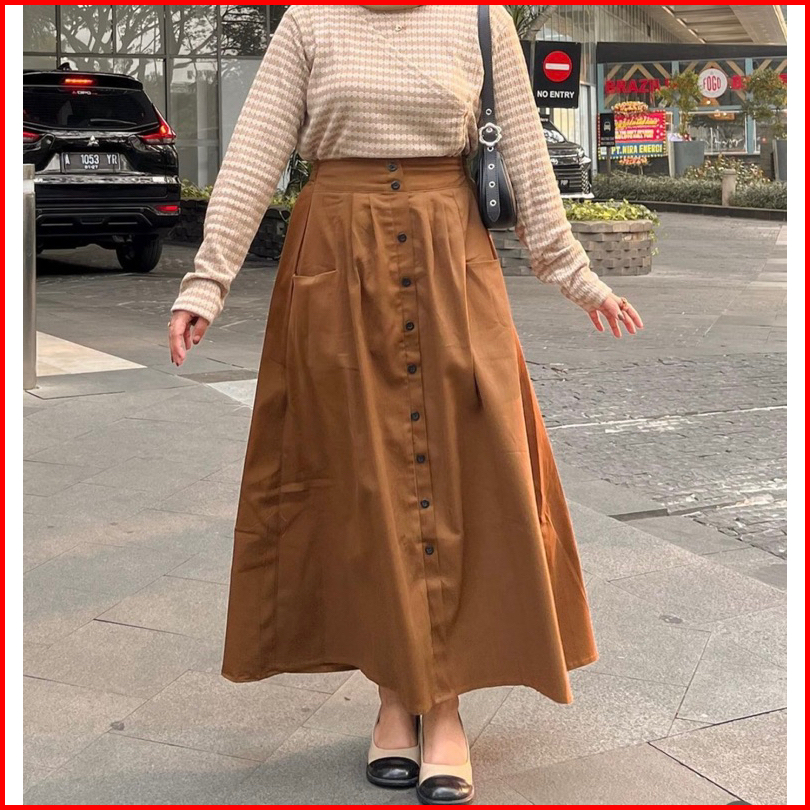 Nuna Skirt - Rok Maxi Model Lipit Variasi Kancing Bahan Twill Tebal Ghs