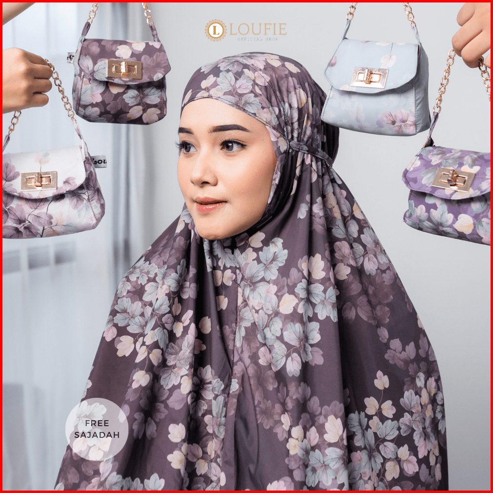 Loufie - Mukena Dewasa Travelling Mini Pouch Parasut Korea Motif Lilly