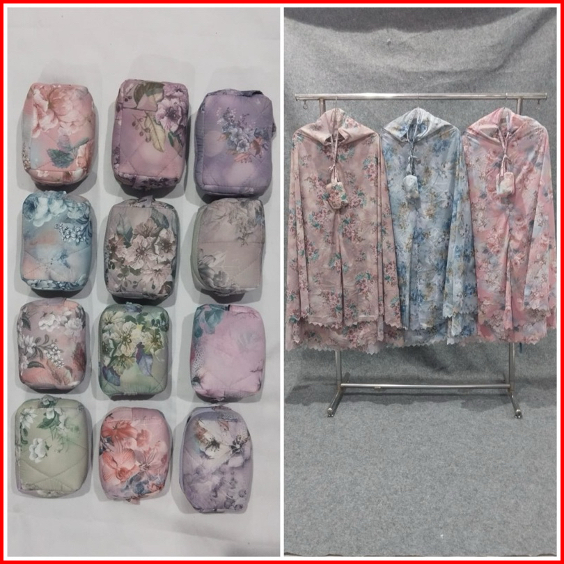 Mukena Dewasa Traveling Mini Parasut Premium Korea Motif Polos Free Sajadah Muka