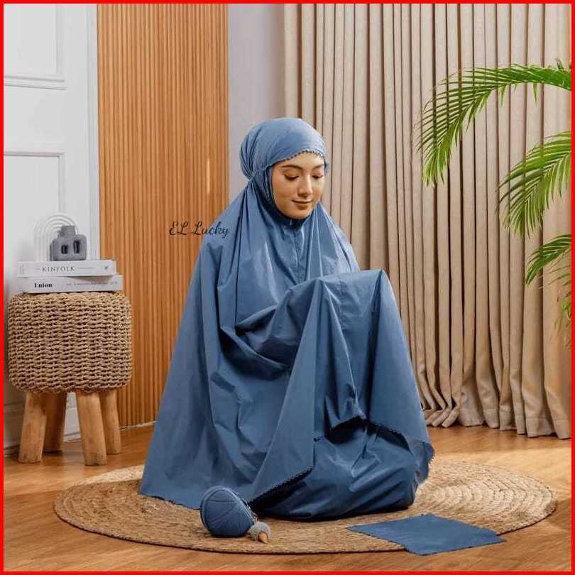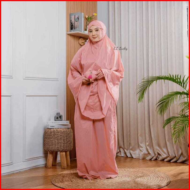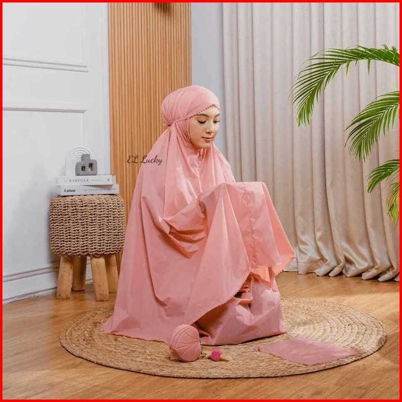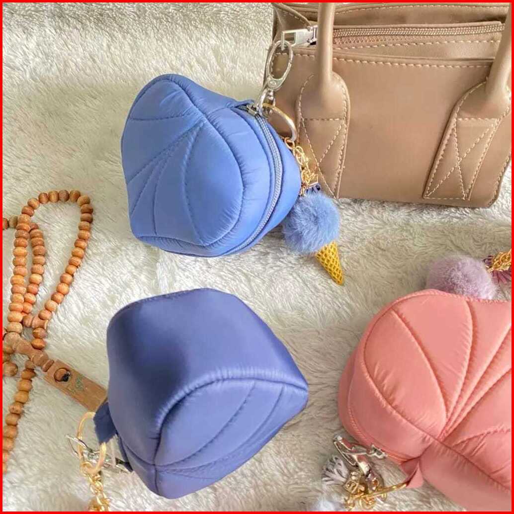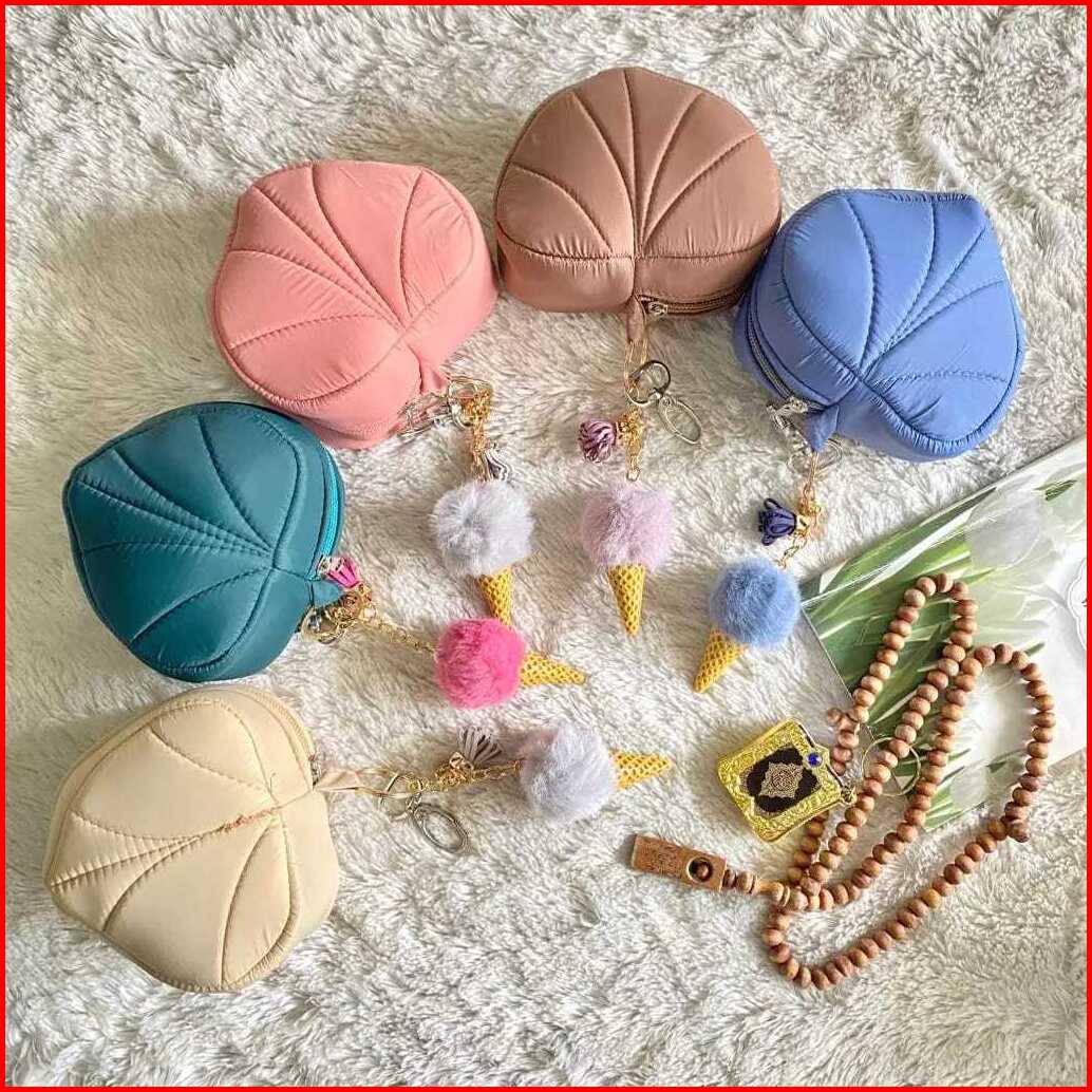 Mukena Traveling Mini Pouch Love Plus Pompom Parasut Korea