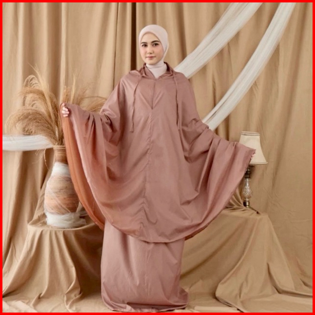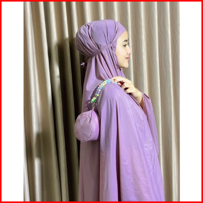 Zona Mukena - Mukena Traveling Mini Pouch Terkecil Premium 2 In 1 Dewasa Parasit Korea Free Gantungan Tasbih